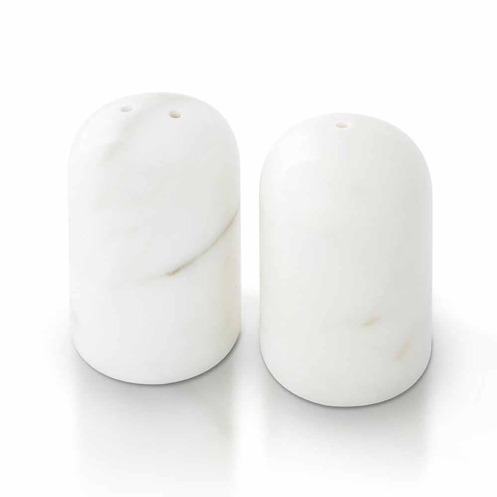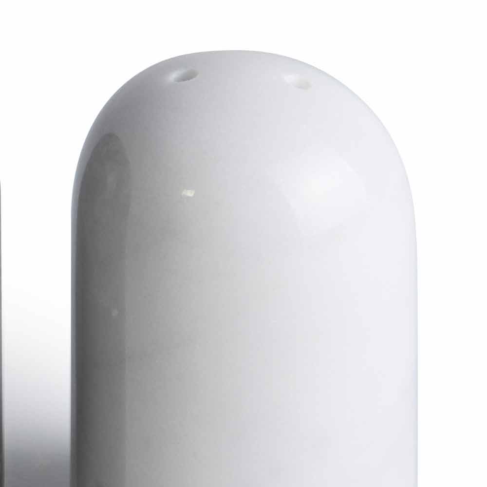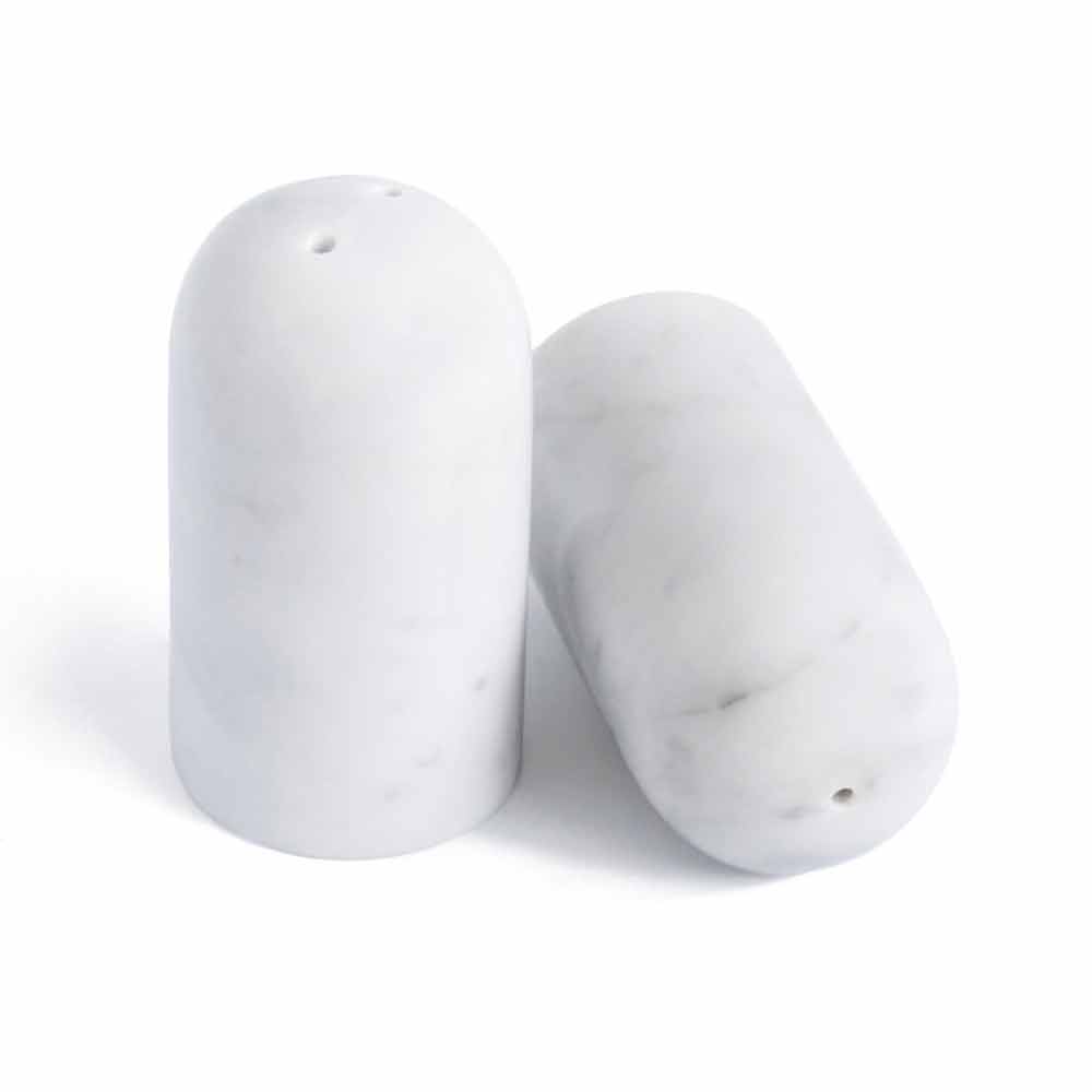 Dessa köksbehållare för salt och peppar kännetecknas av användningen av vit Carrara-marmor och svart Marquinia- marmor och ska betraktas som unika bitar eftersom varje block av marmor som används skiljer sig från de andra i vener och nyanser.