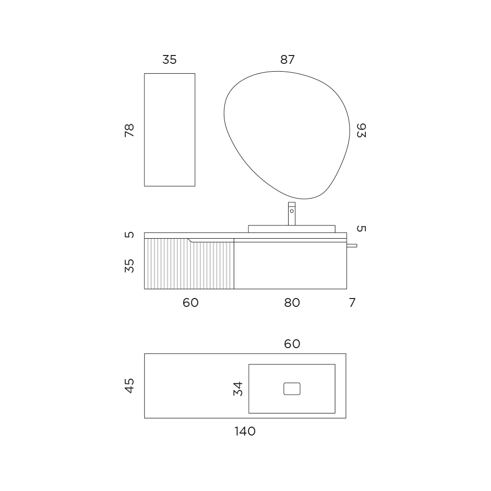 - Tvättställ: Längd 60 cm x Djup 34 cm x Höjd 15,7 cm