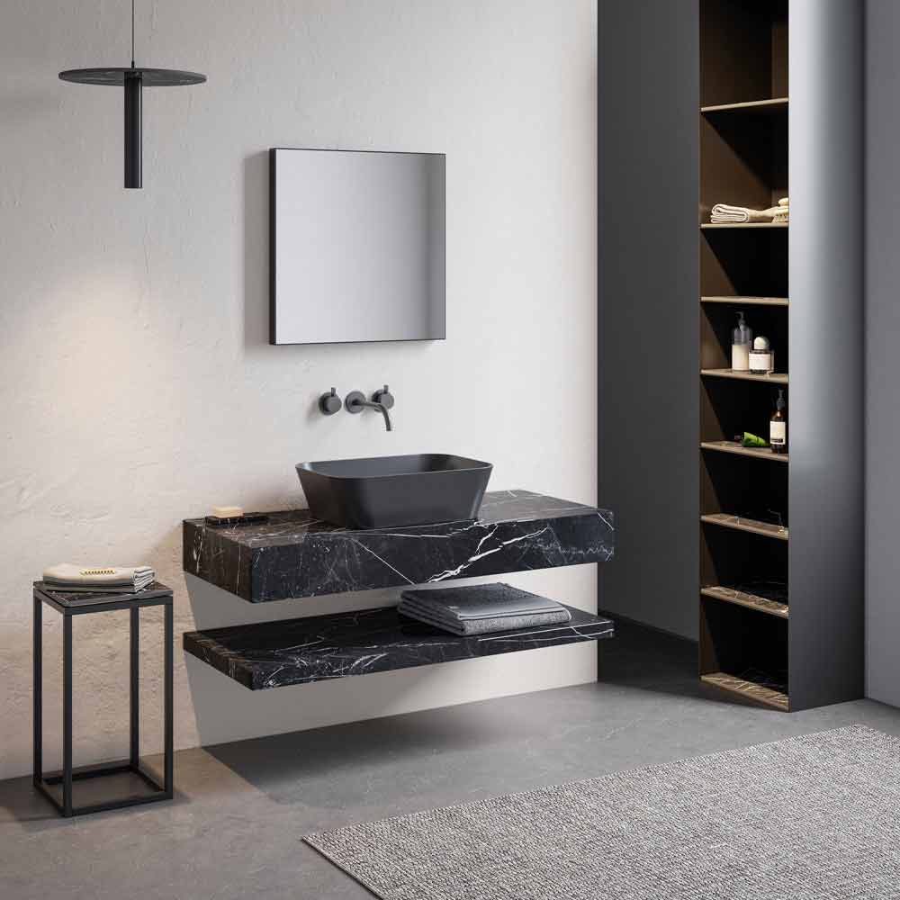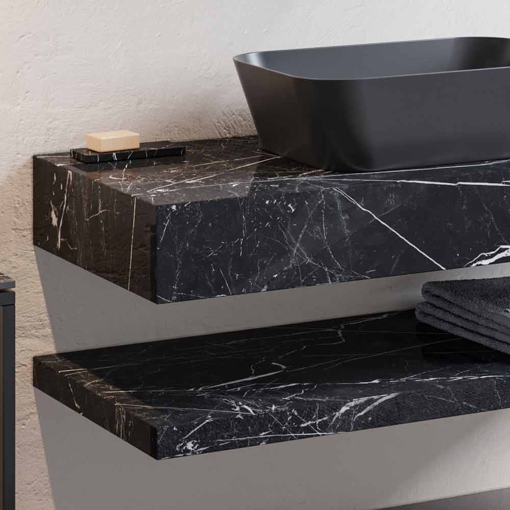 Upphängd sammansättning av 3 badrumsmöbler i porslinstengods och glasartad porslin, hög kvalitet tillverkad i Italien.