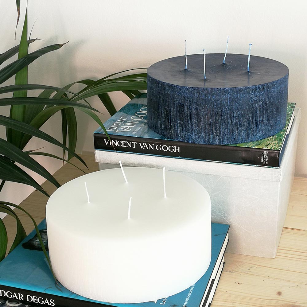 Sammansättning av designljus tillverkade av vax i olika storlekar och färger Tillverkad i Italien.