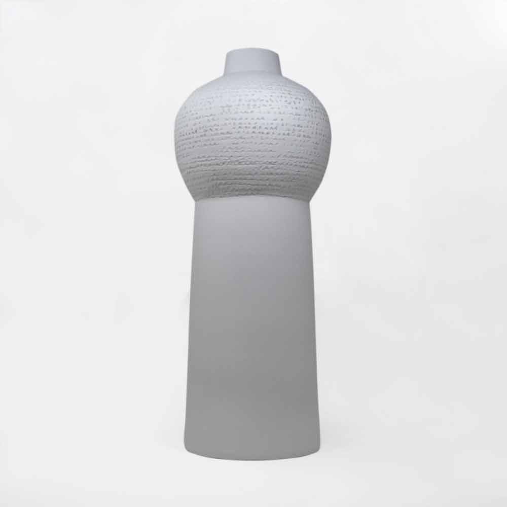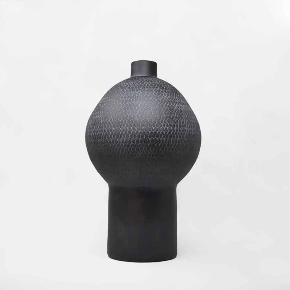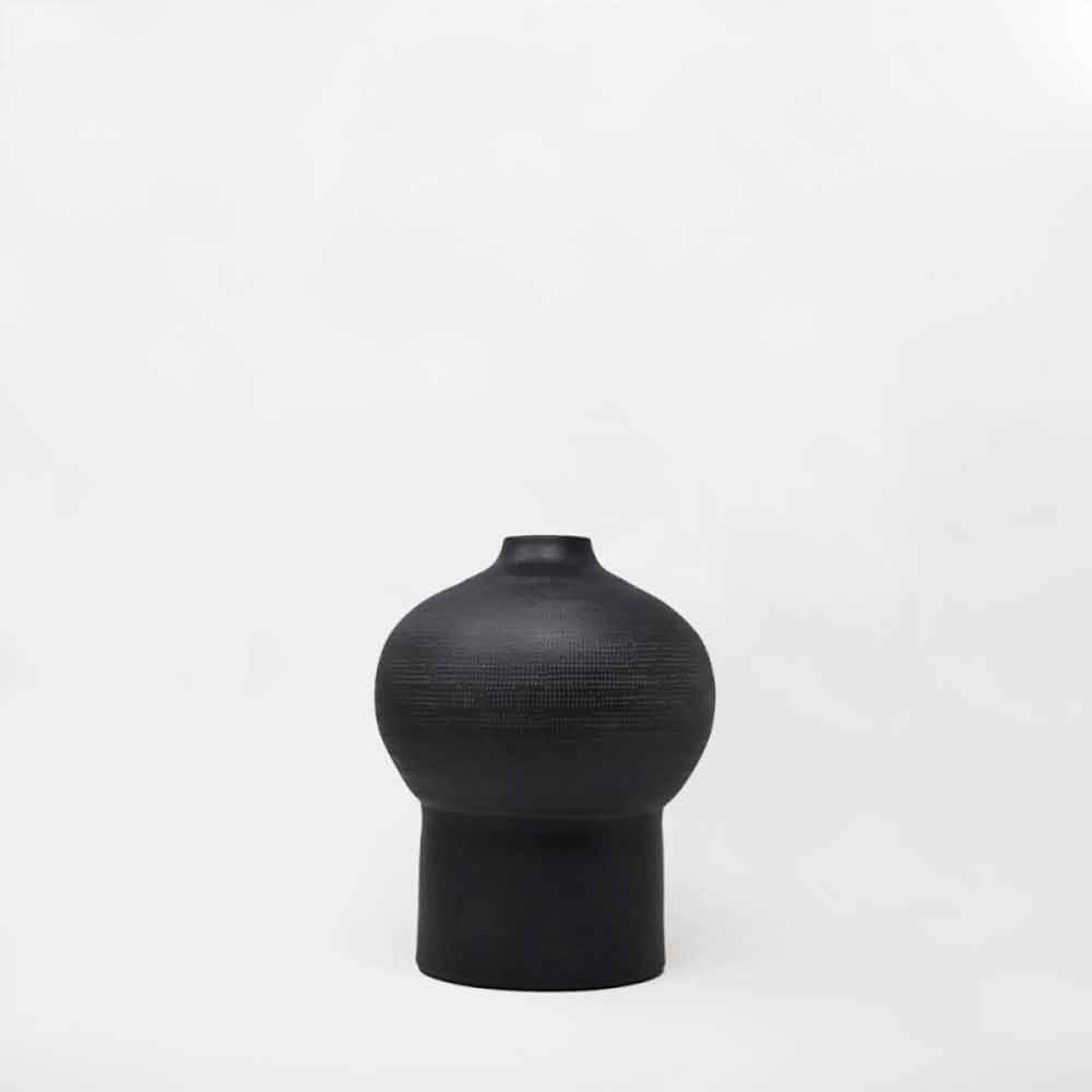 Sammansättning av dekorativa vaser i svartvitt keramik.