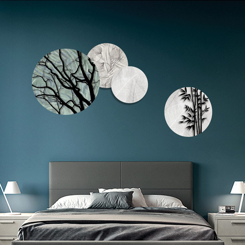 4) vita löv och svarta grenar panel: diameter 40 x D 2cm.