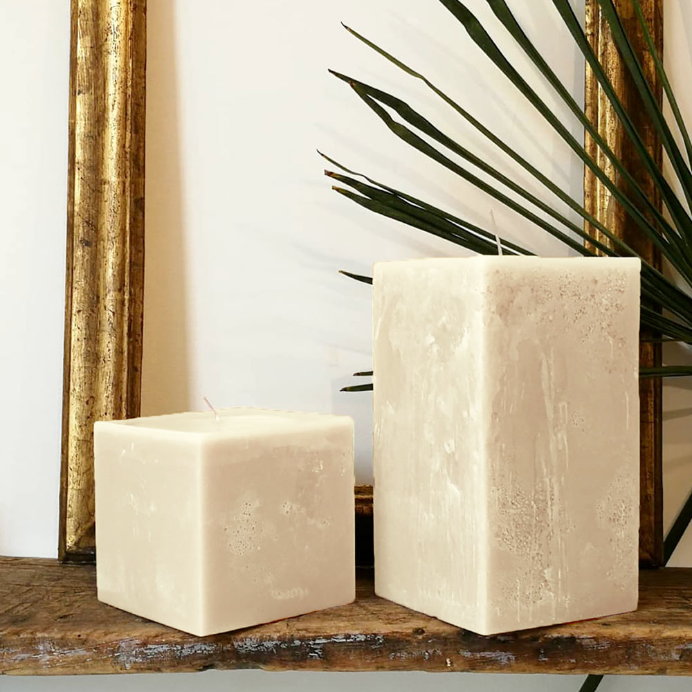 Sammansättning av 3 fyrkantiga ljus i olika storlekar och finns i olika färger tillverkade av Made in Italy vax.