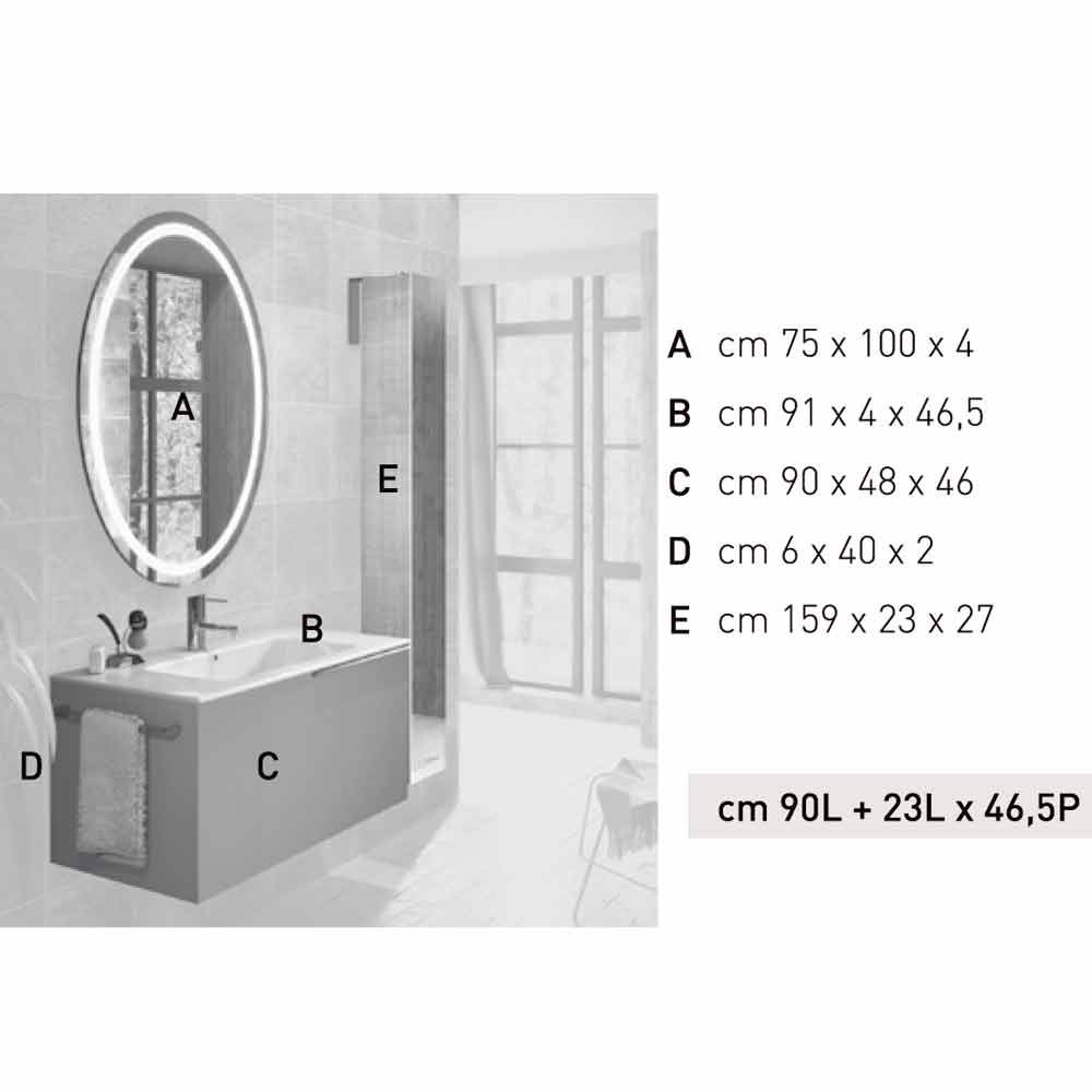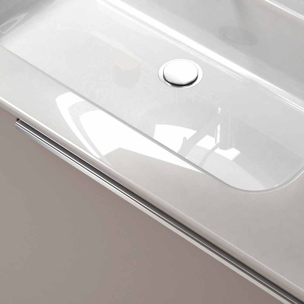 Genova är en komposition av hängande badrumsmöbler av ek-trä med satinlackerad yta; Att knyta samman skapar en slags hållbarhet och respekt för miljön med innovation.
