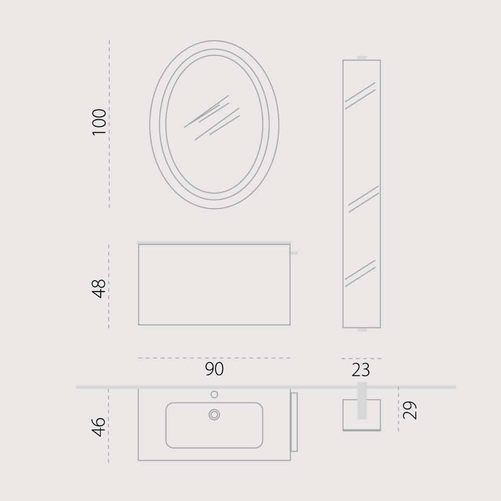 - En diskbänk i matt dove grå lackerad mdf med handtag i krombrillfinish; L90xH48xP46 cm;