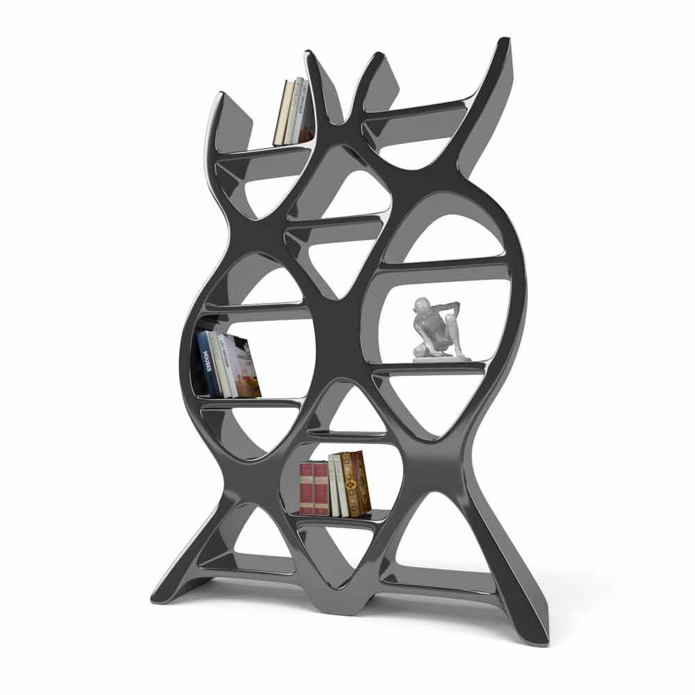 Bortom bokhyllan, en skulptur inspirerad av DNA, en källa till liv och kunskap. De mjuka och slingrande linjerna i kombination med en stark scenisk påverkan gör att DNA-bokhyllan passar som en exklusiv möbel i hemmet. Dess utomordentliga former gör den också idealisk för miljöer dedikerade till litterära barer eller kaffebibliotek. Solid Ytstruktur, finns i olika färger: Svart (RAL9005), Rubinröd (RAL3003) eller Pärlvit (RAL1013).