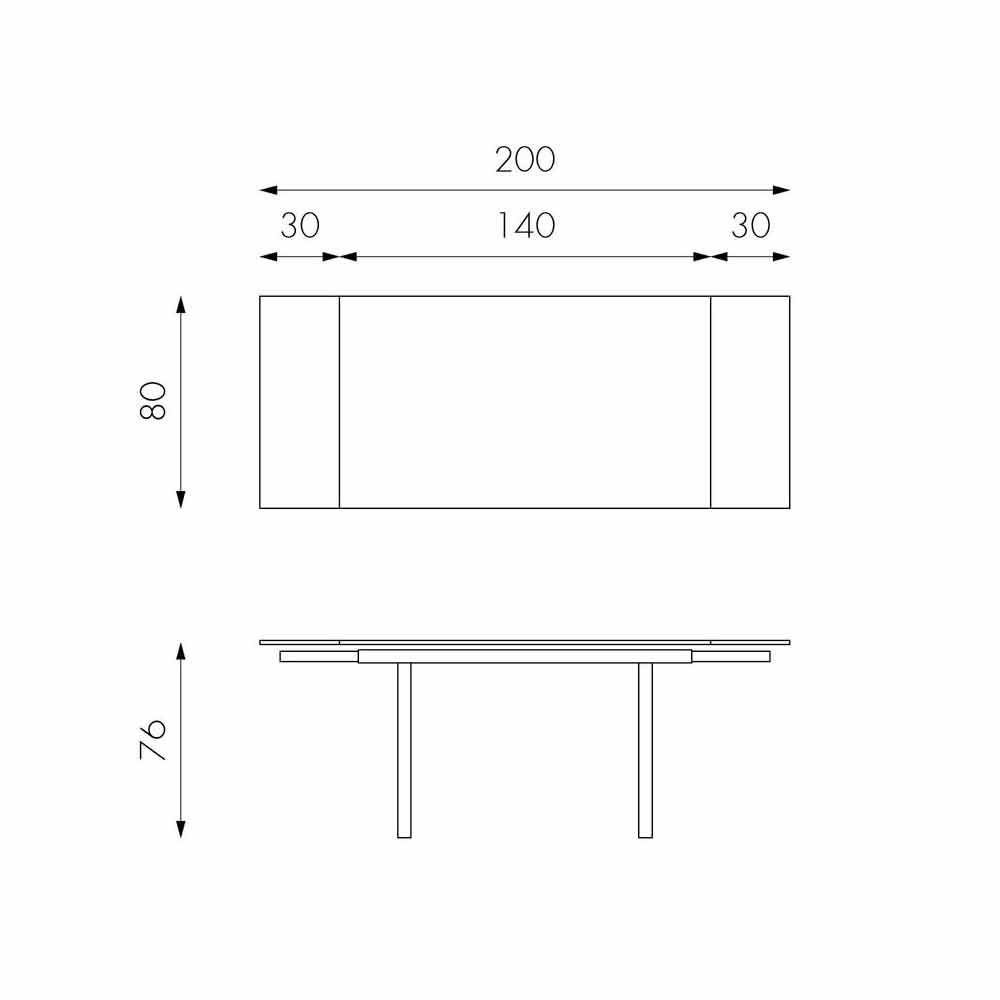 Nardo är ett utdragbart bord upp till 200 cm med mått: l.140 / 200 x d.80 x h.76 cm.