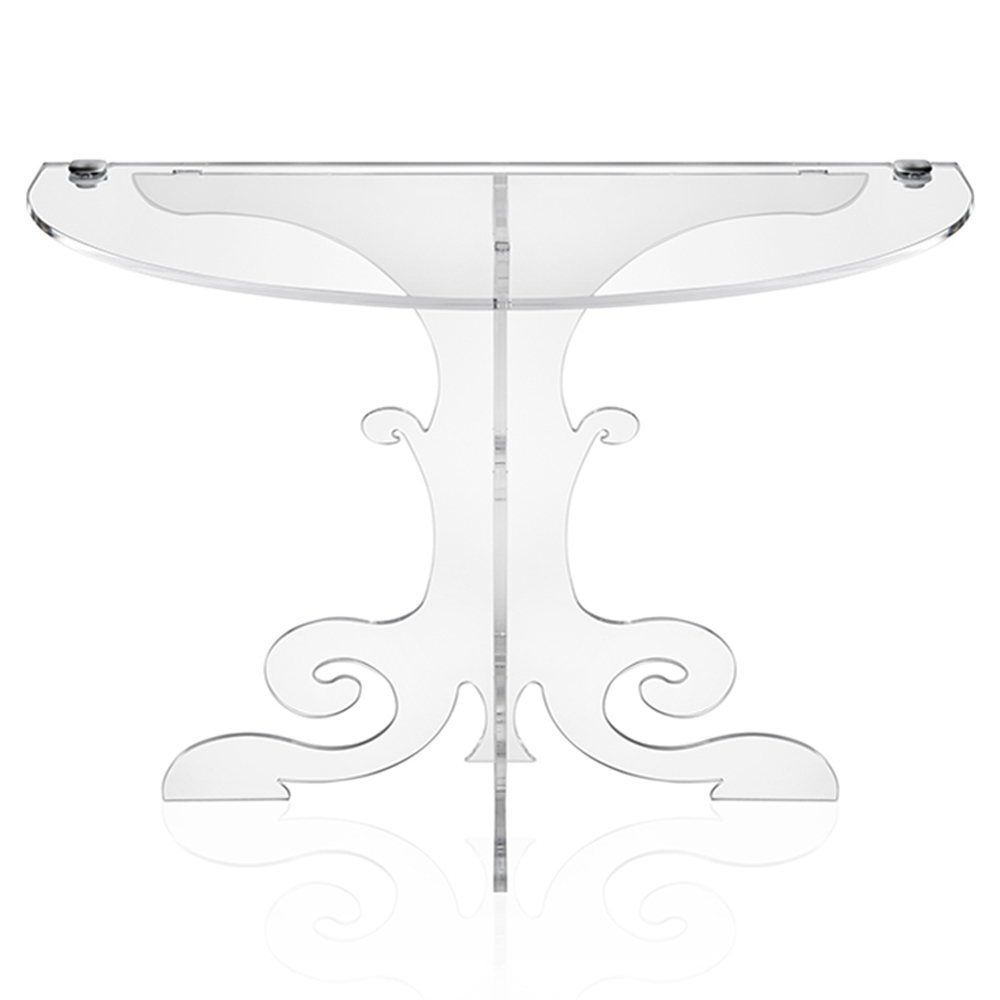 TIANA nattduksbordet är inspirerat av Louis XVI väggkonsoler från slutet av 1700-talet, omtolkade med de mest teknologiska av transparenta material: 100 % PMMA akrylkristall från jungfrulig polymer.