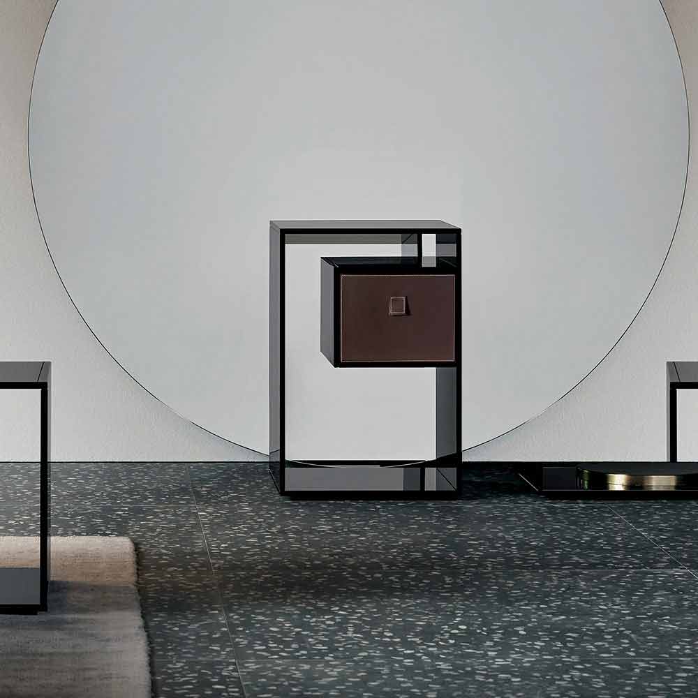 OBS: Lådorna i olika ytor och den övre hyllan för lådan i syraetsad, spegel eller lackerat glas finns på begäran. För en kostnadsfri offert, tveka inte att kontakta oss genom att fylla i formuläret "Begär information".