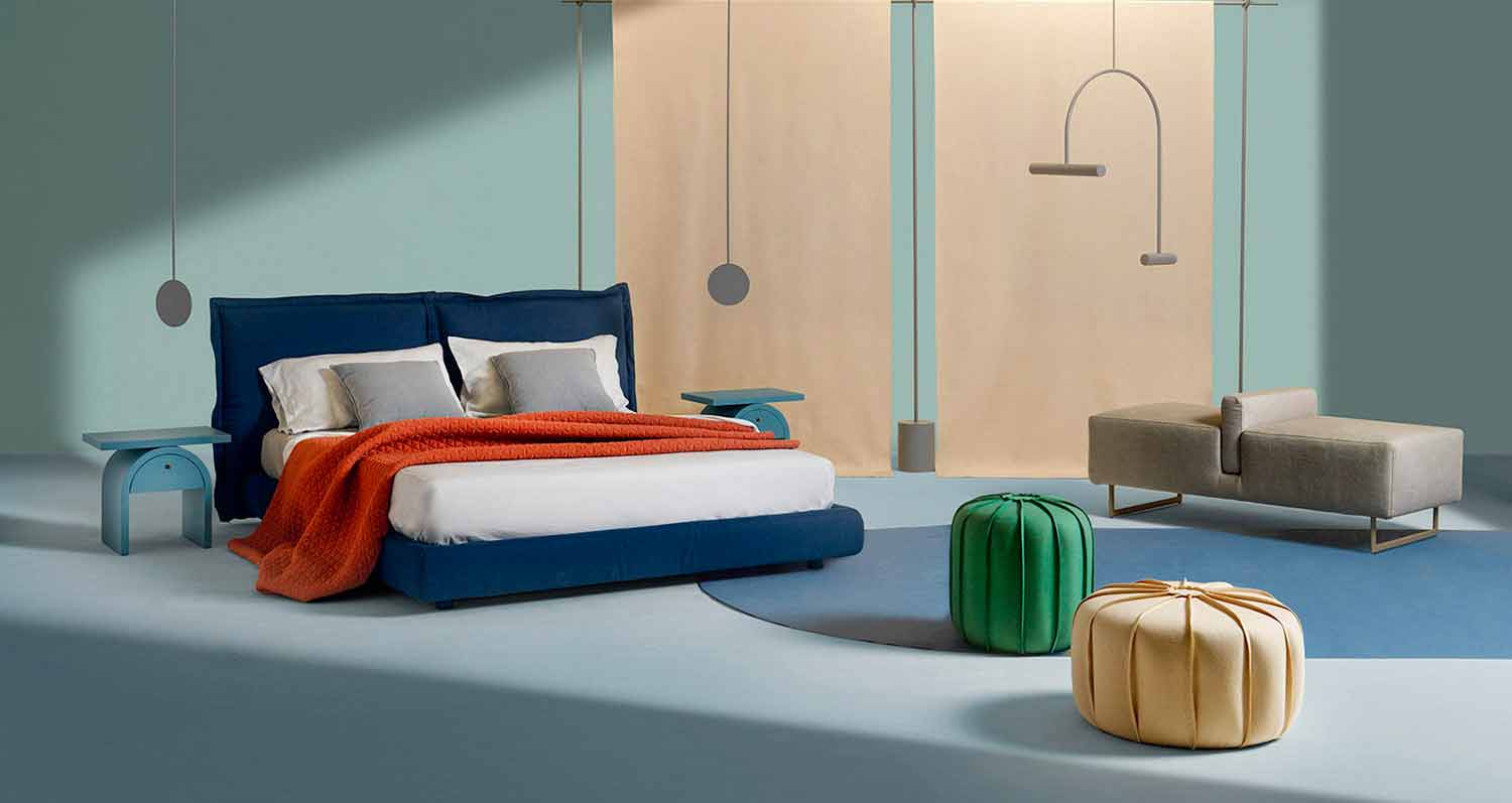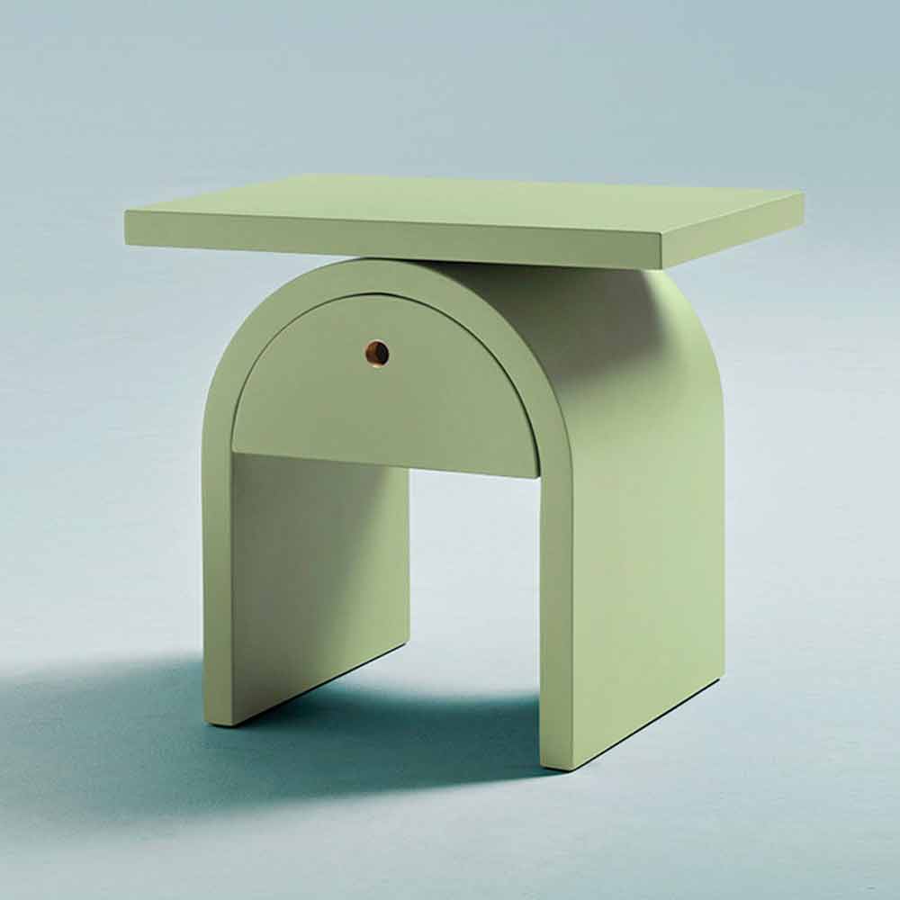 modern omtolkning av de traditionella formerna på sängbordet, för en liten, ironisk och lätt hemarkitektur.