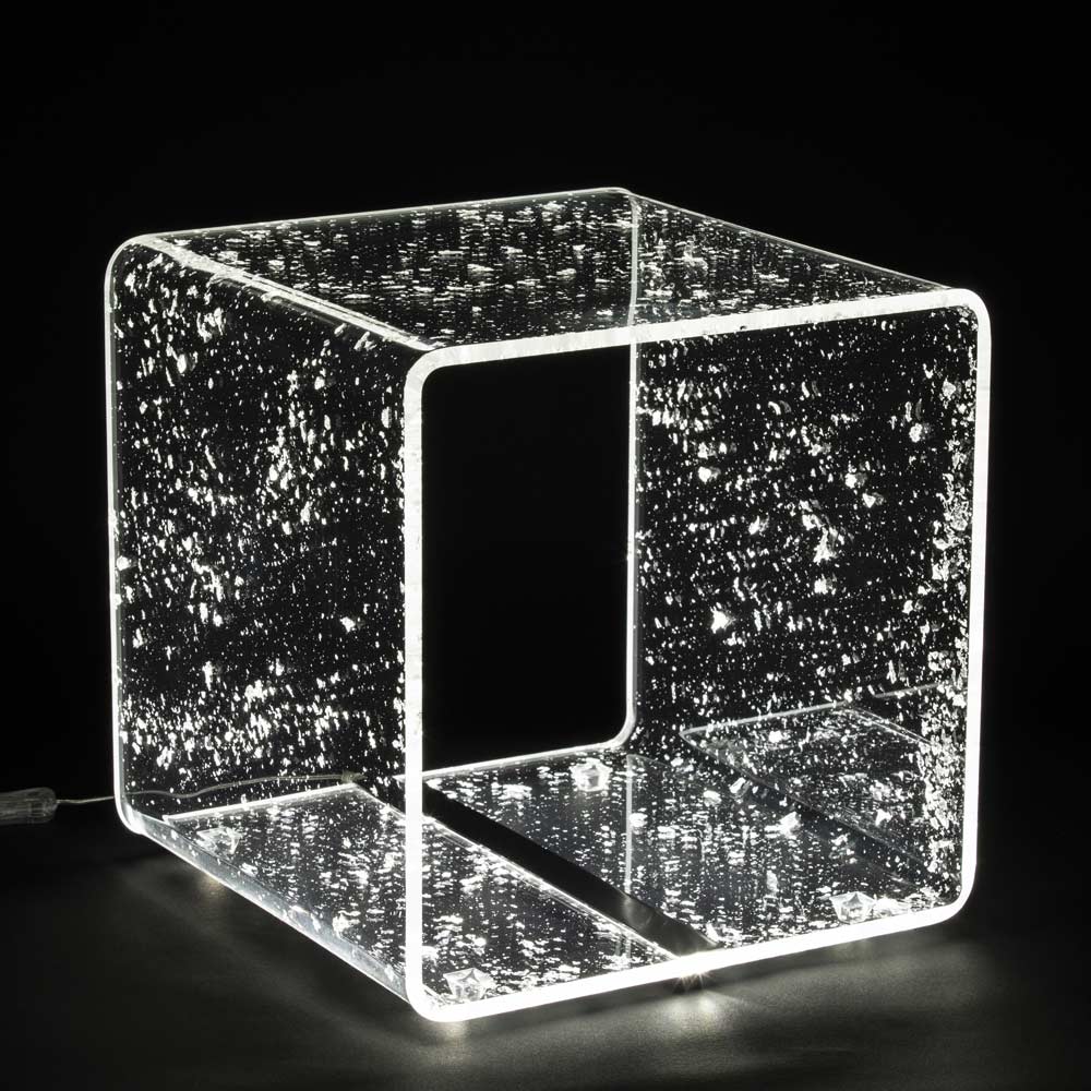 Lysande sängbord i akrylkristall och bladguld, silver eller koppar, tillverkat i Italien.