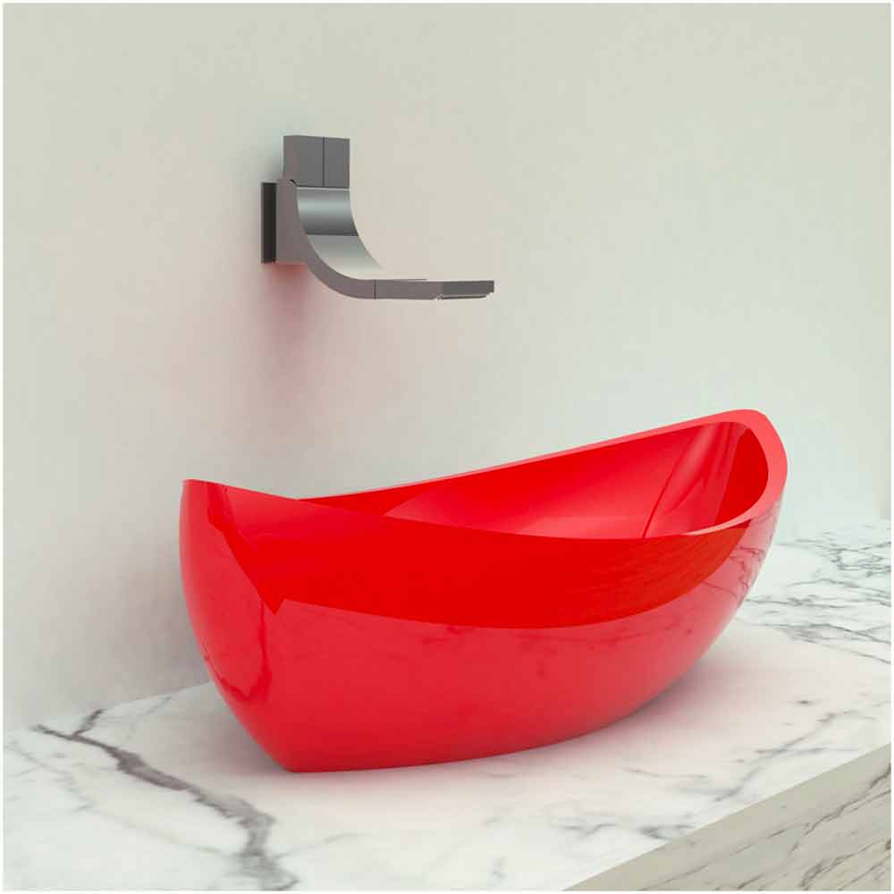 Den minimala designen av Sashimi och Funamori, handfat och badkar återskapar en elegant Zen-miljö tack vare det väsentliga i deras linjer och form.