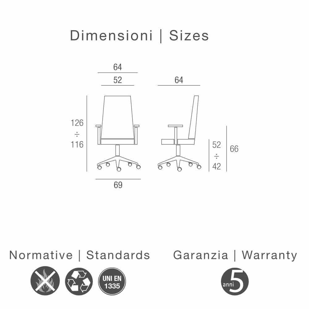 Debora är en verkställande kontorsstol, med modern design, tillverkad i Italien.