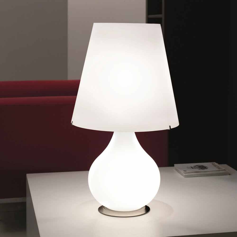 Evigt det är samling av tre bordslampor från den traditionella smaken, bestående av bas och lampskärm i vitt blåst glas. Metalldelarna är i satin nickel, lamporna gynnas också av en anordning för 'tändning även separera de två högtalarna.