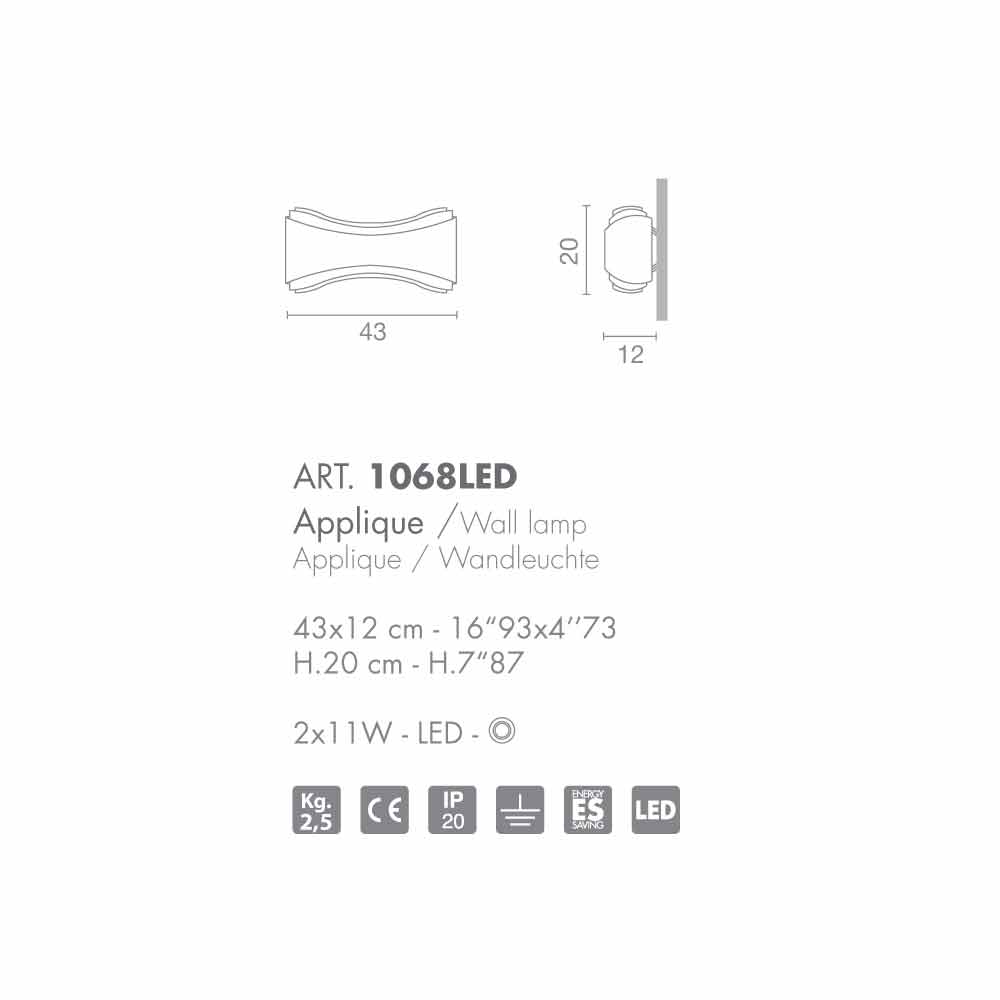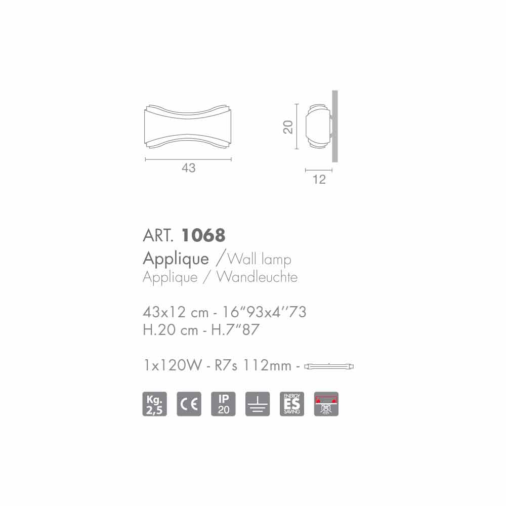 Selene Ionica APPLIQUE stål och glas handgjorda 43x12 H 20cm