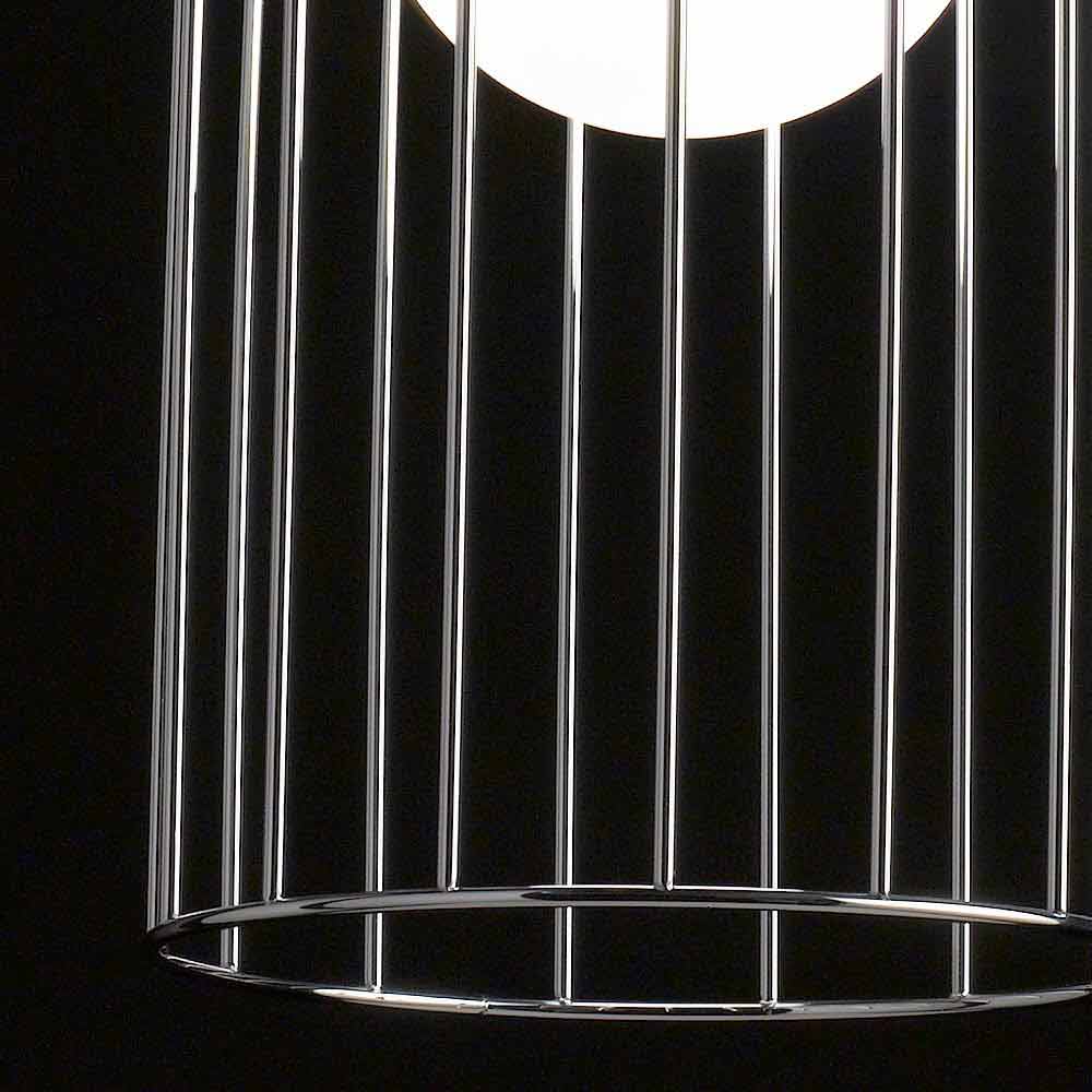 Kluvì är samling av tre suspensioner och te stöd lampor, som kan nå en betydande storlek, som består av en metall bur och en sfär i mjölkvit blåst glas. Finish: krom; förberedd för 'utiizzo en glödlampa 33W - G9.