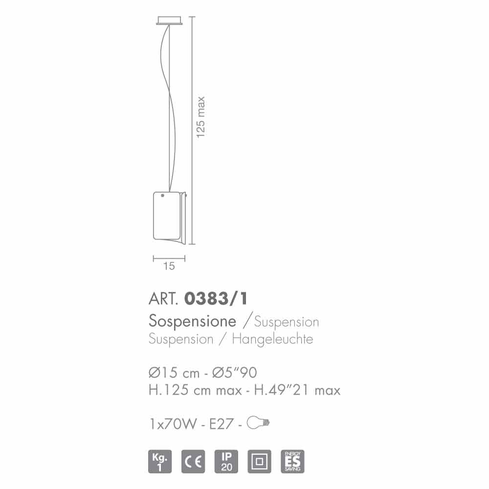 Papyrus är en otrolig samling rik och mångsidig, som samlar alla typer av lampor uppdelade i flera variationer av form, storlek och antal ljuskällor. Diffusorn, med en speciell form, är extra-klarglas och finns i olika utföranden. Förberedd för 'användning av en E 27 70W glödlampa (ingår ej).