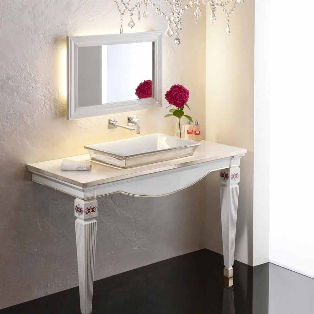 Semirecessed badrumsavlopp handgjord i Italien i brandlera med blank vit inuti och raffinerad i platina på utsidan.