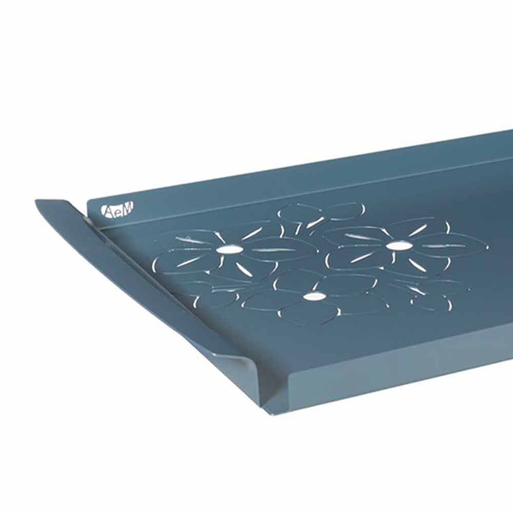 Modern rektangulär serveringsbricka med blommor i vitt, lera eller blått järn; handgjorda i Italien.