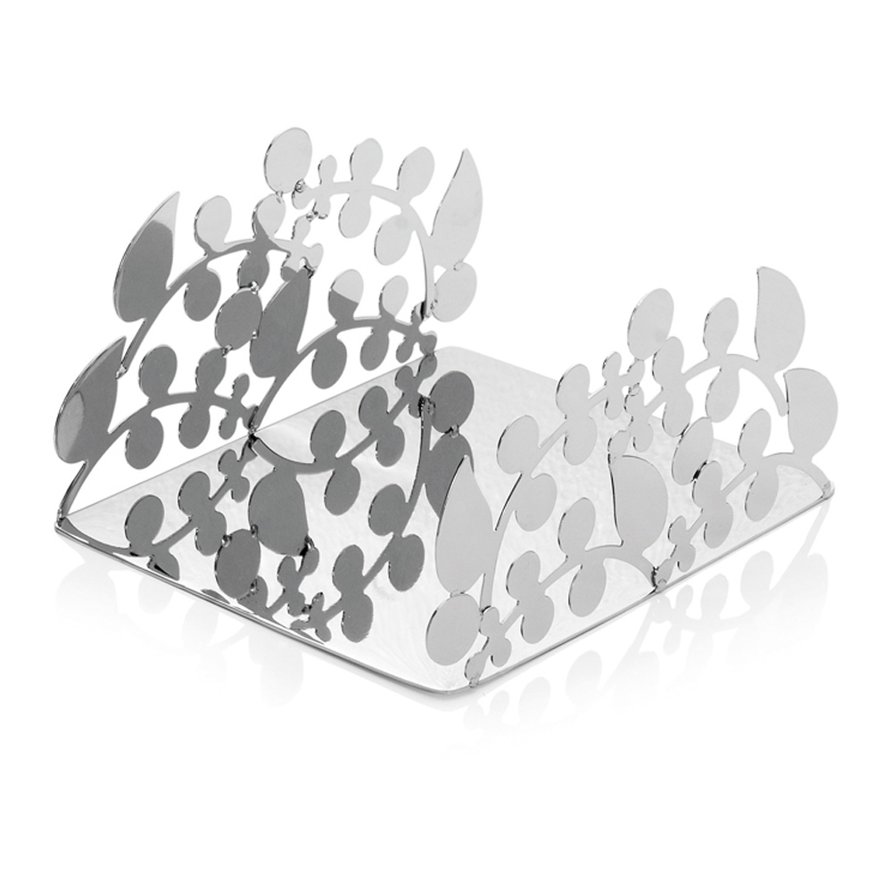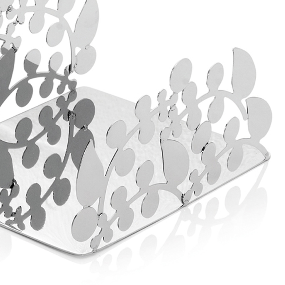 Denna servetthållare har en sofistikerad och elegant rektangulär design , helt gjord av silvermetall med naturalistiska dekorationer.