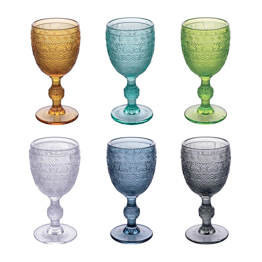 Denna uppsättning med 12 glas är en triumf av färg och klassisk utsmyckning . Med nyanser som sträcker sig från varmt guld till levande grönt , och från genomskinlig is till midnattsblått , speglar varje pjäs en unik och tidlös skönhet. Designen arbetade med geometriska motiv och sofistikerade symmetrier ger en känsla av gammal prakt, perfekt för ett dukat bord med stil och förfining . Dessa glas är inte bara behållare för drycker, utan riktiga konstföremål , perfekta för att fira speciella tillfällen eller för att njuta av en touch av lyx på en daglig basis.