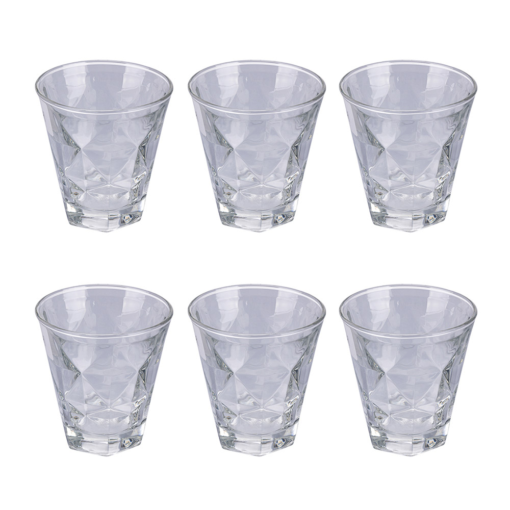 Upptäck den kristallina transparensen och finess i denna uppsättning med 12 glas , perfekt för alla sofistikerade tillfällen . Den precisionsskurna geometriska designen ger inte bara en touch av visuell elegans , utan också en behaglig textur vid beröring. Glasets klassiska skärning och klarhet reflekterar ljuset sublimt, vilket gör varje toast till ett lysande ögonblick. Dessa glas är ett exempel på kvalitetshantverk , med en design som förblir elegant över tiden, perfekt för att servera dina favoritdrycker med oöverträffad stil.
