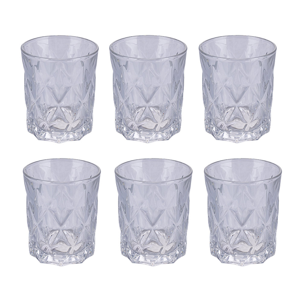 Upptäck den kristallina transparensen och finess i denna uppsättning med 12 glas , perfekt för alla sofistikerade tillfällen . Den precisionsskurna geometriska designen ger inte bara en touch av visuell elegans , utan också en behaglig textur vid beröring. Glasets klassiska skärning och klarhet reflekterar ljuset sublimt, vilket gör varje toast till ett lysande ögonblick. Dessa glas är ett exempel på kvalitetshantverk , med en design som förblir elegant över tiden, perfekt för att servera dina favoritdrycker med oöverträffad stil.