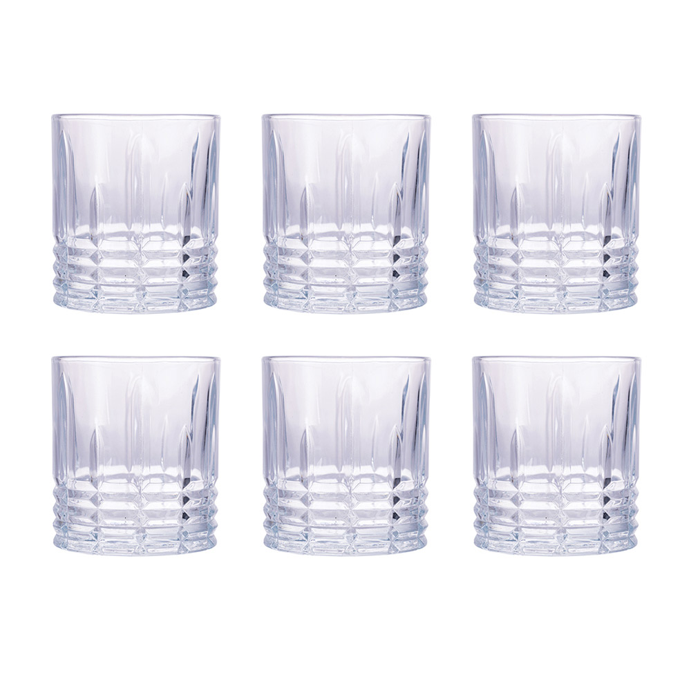 Upptäck den kristallina transparensen och finess i denna uppsättning med 12 glas , perfekt för alla sofistikerade tillfällen . Den precisionsskurna geometriska designen ger inte bara en touch av visuell elegans , utan också en behaglig textur vid beröring. Glasets klassiska skärning och klarhet reflekterar ljuset sublimt, vilket gör varje toast till ett lysande ögonblick. Dessa glas är ett exempel på kvalitetshantverk , med en design som förblir elegant över tiden, perfekt för att servera dina favoritdrycker med oöverträffad stil.