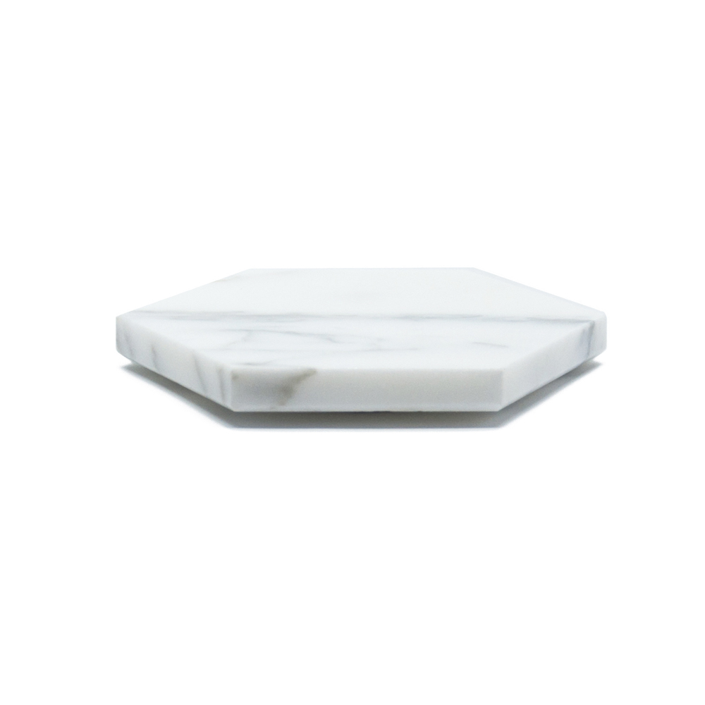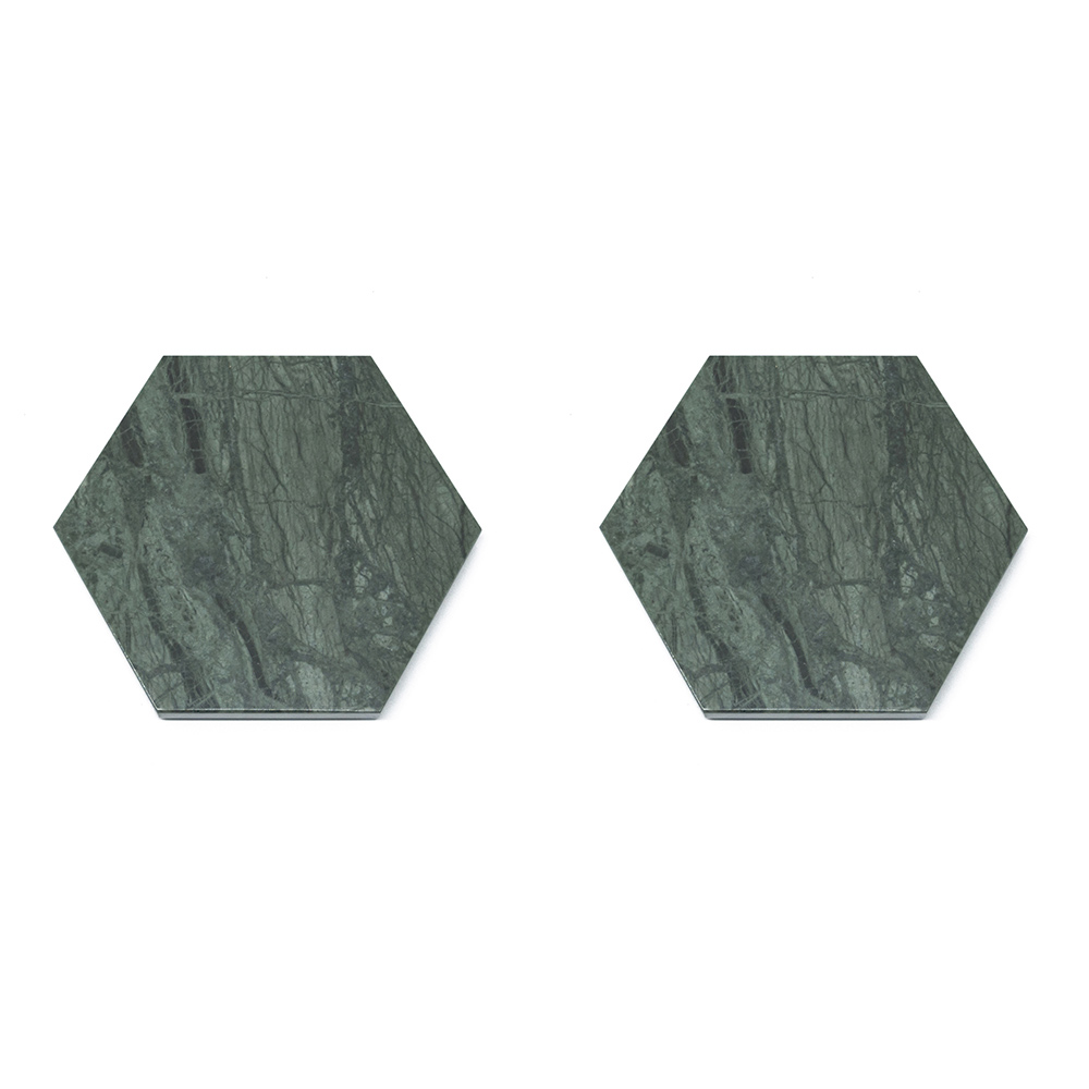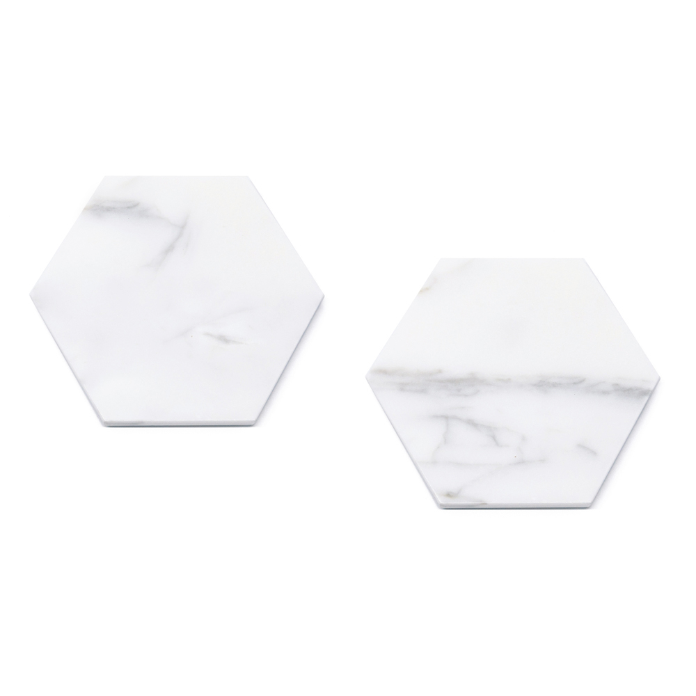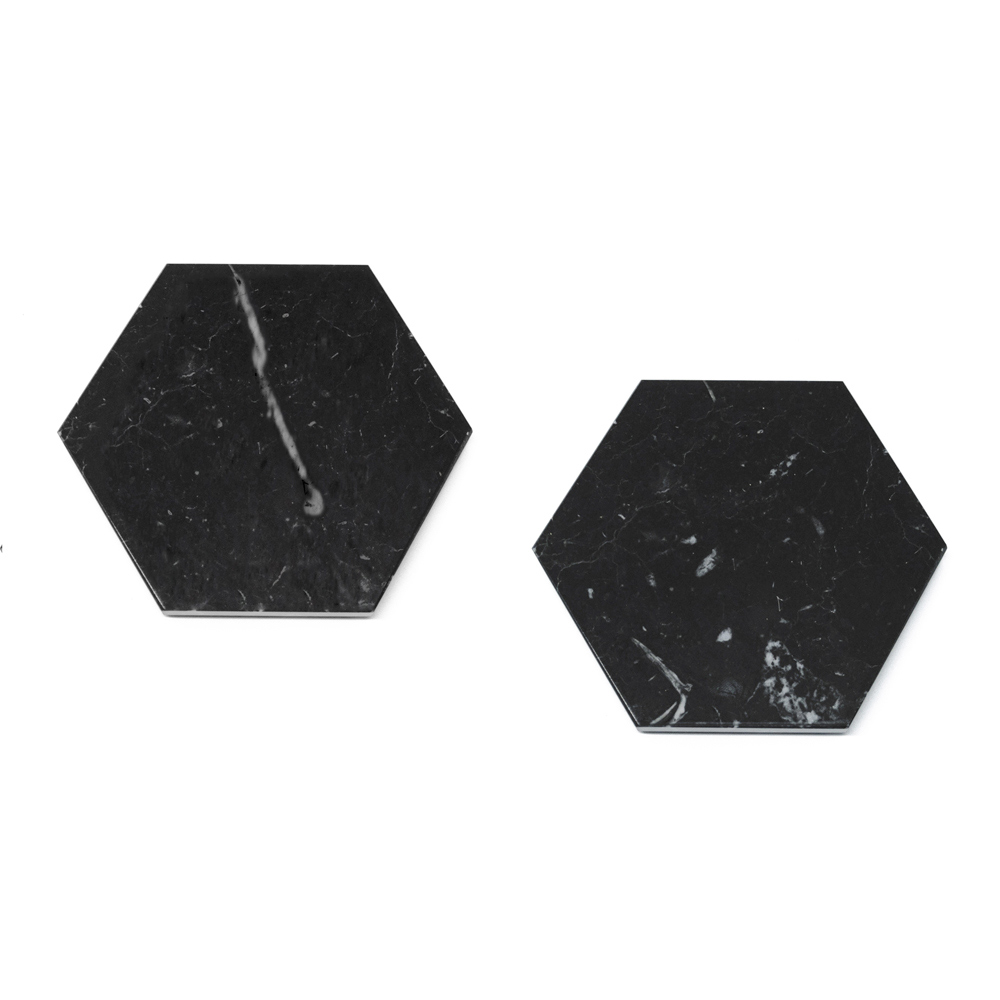 Dessa marmorunderlägg är ett exempel på funktionell sofistikering för det moderna hemmet. Utskurna i en sexkantig form, ett geometriskt nöje för ögonen, och utsmyckade med de naturliga och ständigt föränderliga ådrorna av marmor, är dessa glasunderlägg inte bara praktiska, utan är verkliga inslag av elegans för ditt bord.