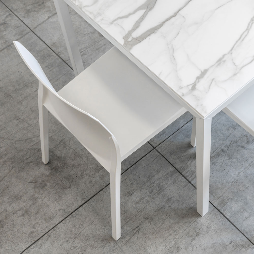 Stapelbar och lätt, stolen representerar en praktisk lösning för dig som behöver optimera utrymmet, både hemma och i kommersiella miljöer som restauranger eller kaféer. Det är det perfekta valet för dem som letar efter en hållbar , elegant design som kan anpassas till flera användningsområden och stilar.