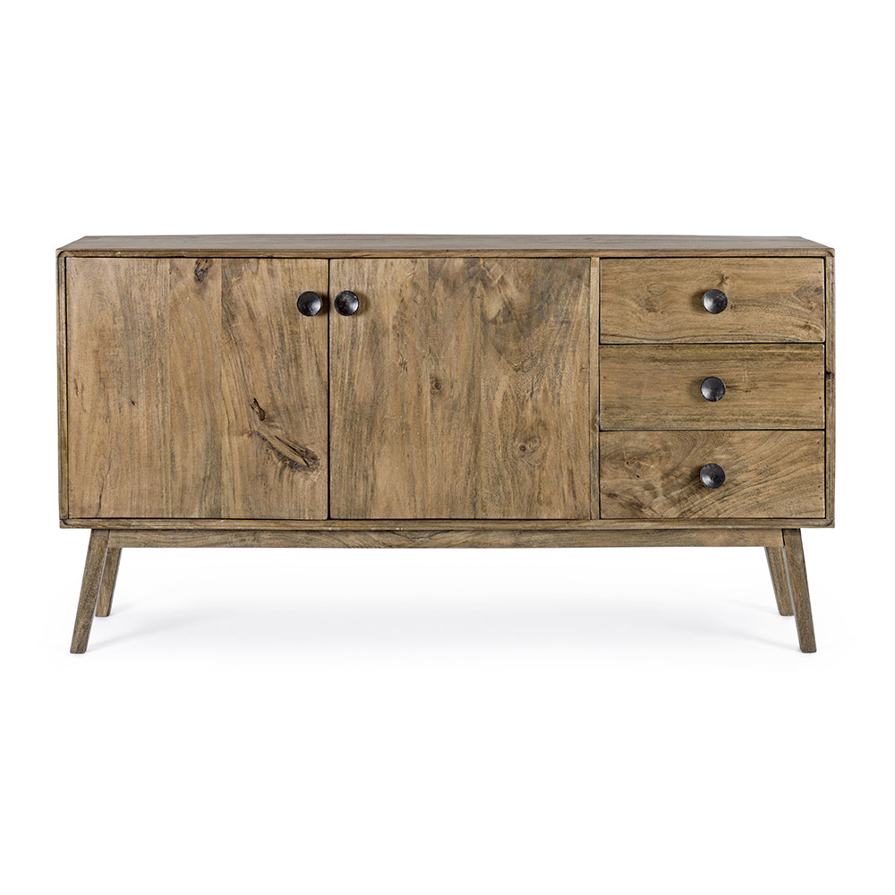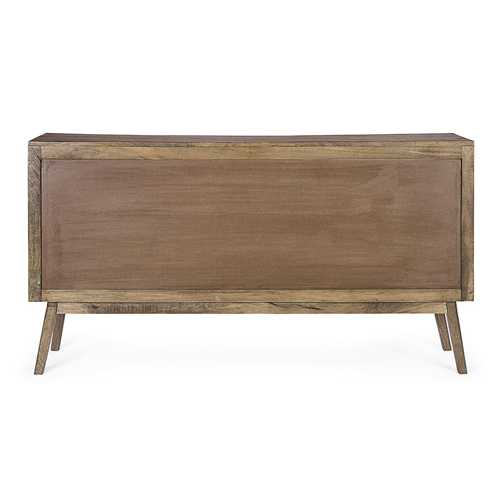 Denna designskänk för vardagsrummet har en struktur och ben som ska monteras i mangoträ med vattenbaserad finish och baksida i MDF.