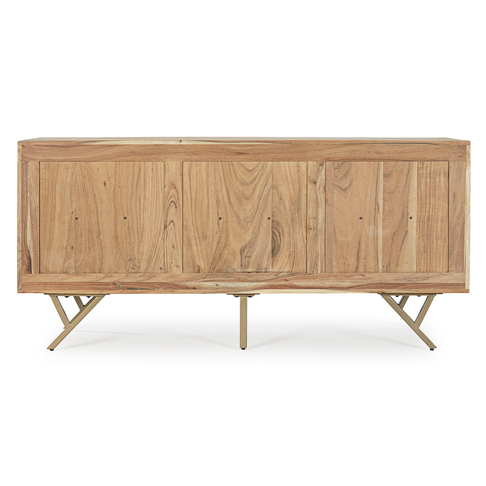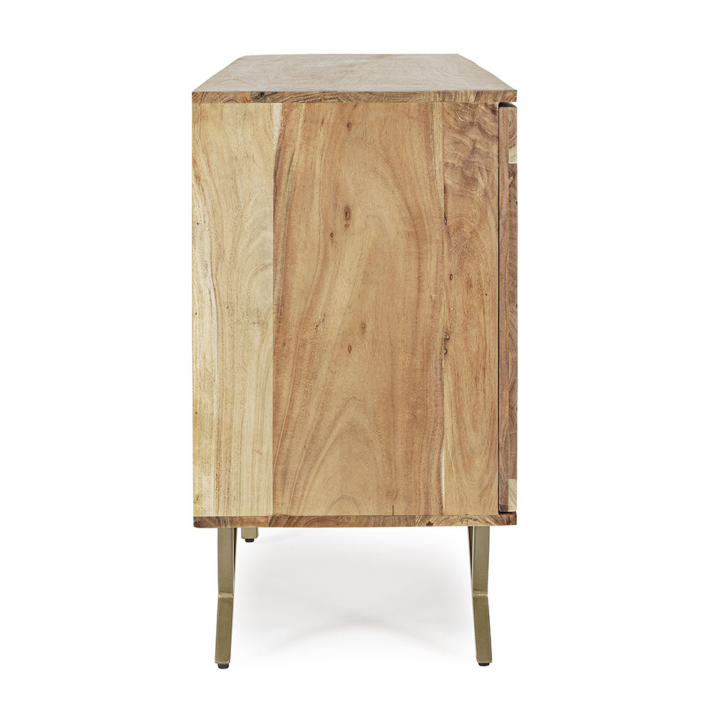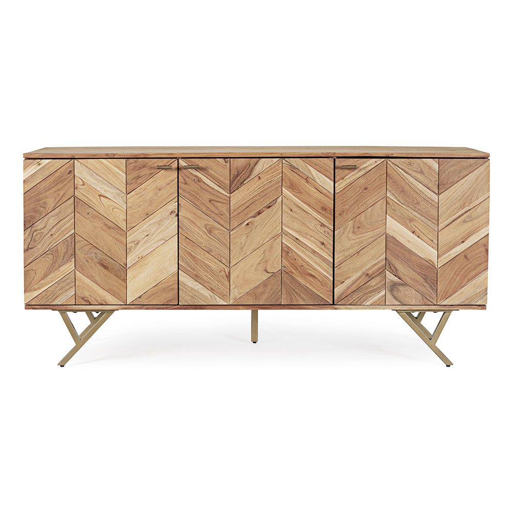 Skänk i akaciaträ med 3 dörrar och stålben av etnisk design.