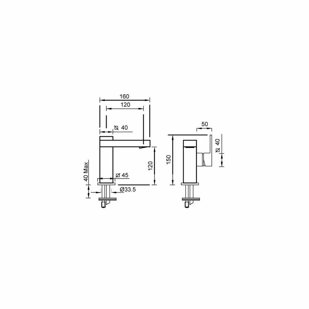 Tvättställsblandare med sidoreglage utan spill i mässing Tillverkad i Italien.