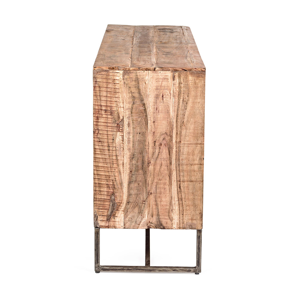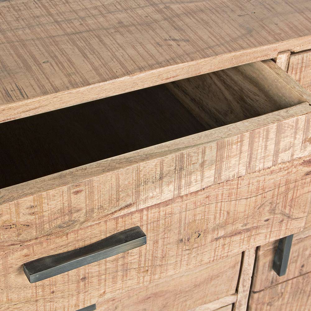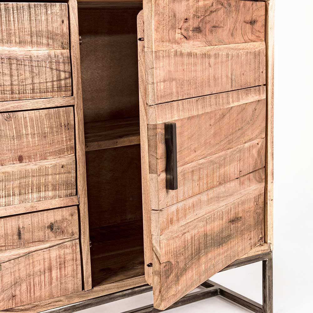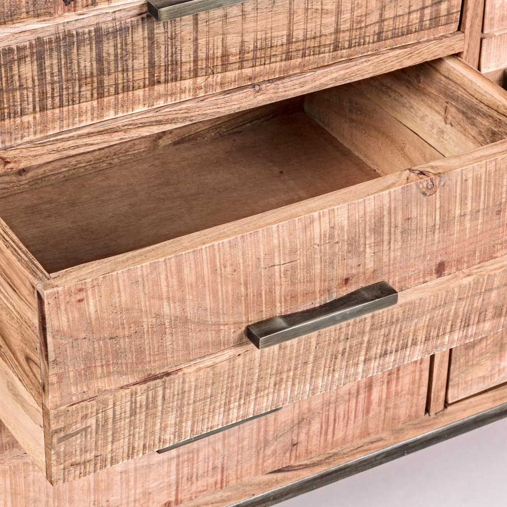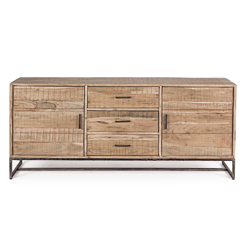 Skänk i akaciaträ med 2 luckor och 3 lådor i 2 storlekar.