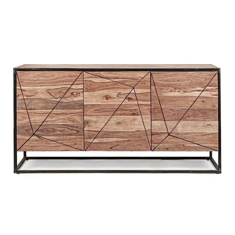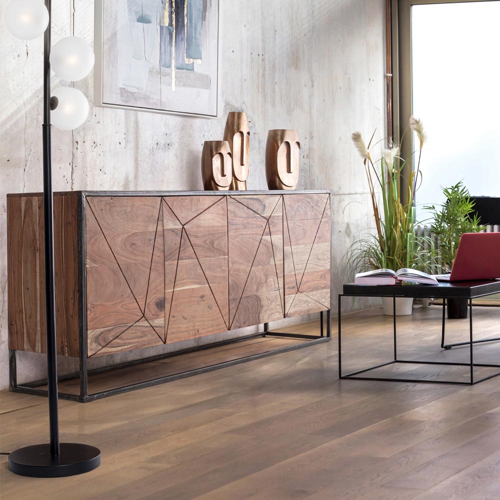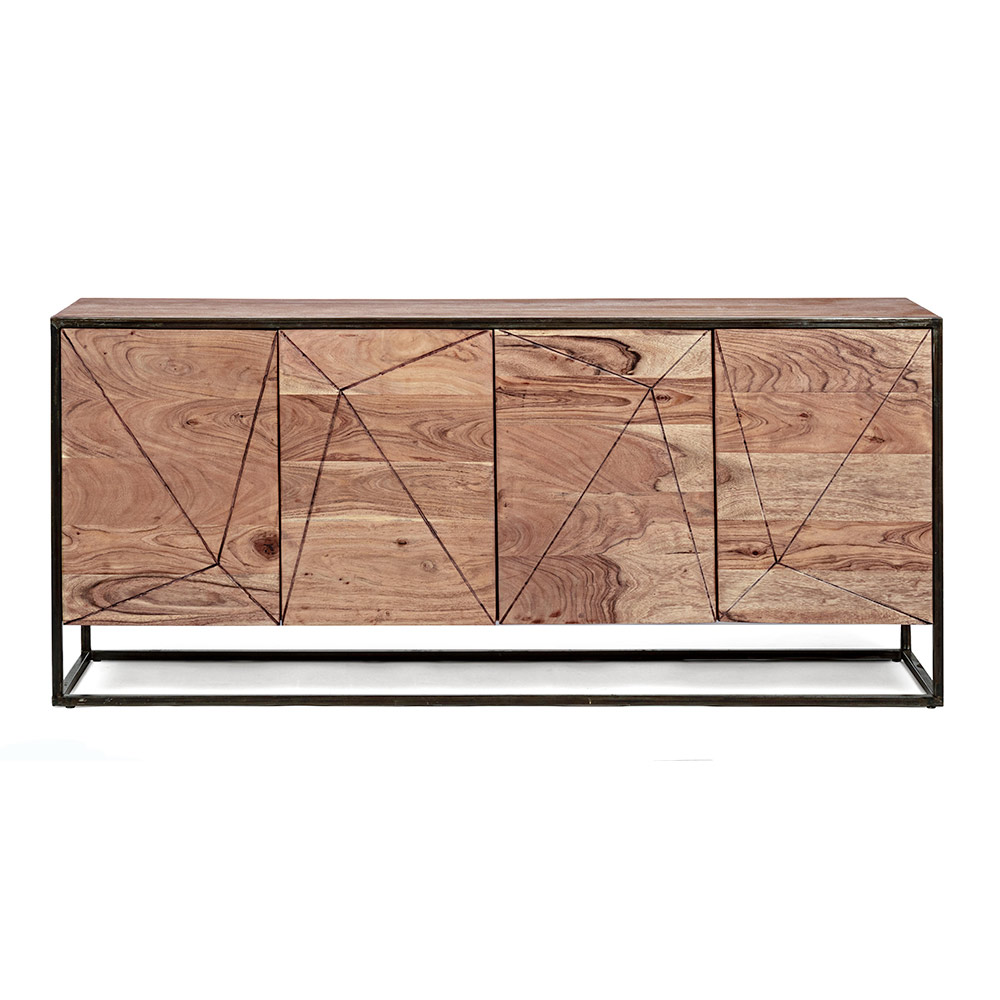 Skänk i akaciaträ och stål i etnisk stil, 2 storlekar.