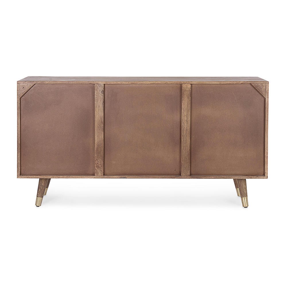 Denna designskänk för vardagsrummet har en struktur av mangoträ med baksida i MDF.