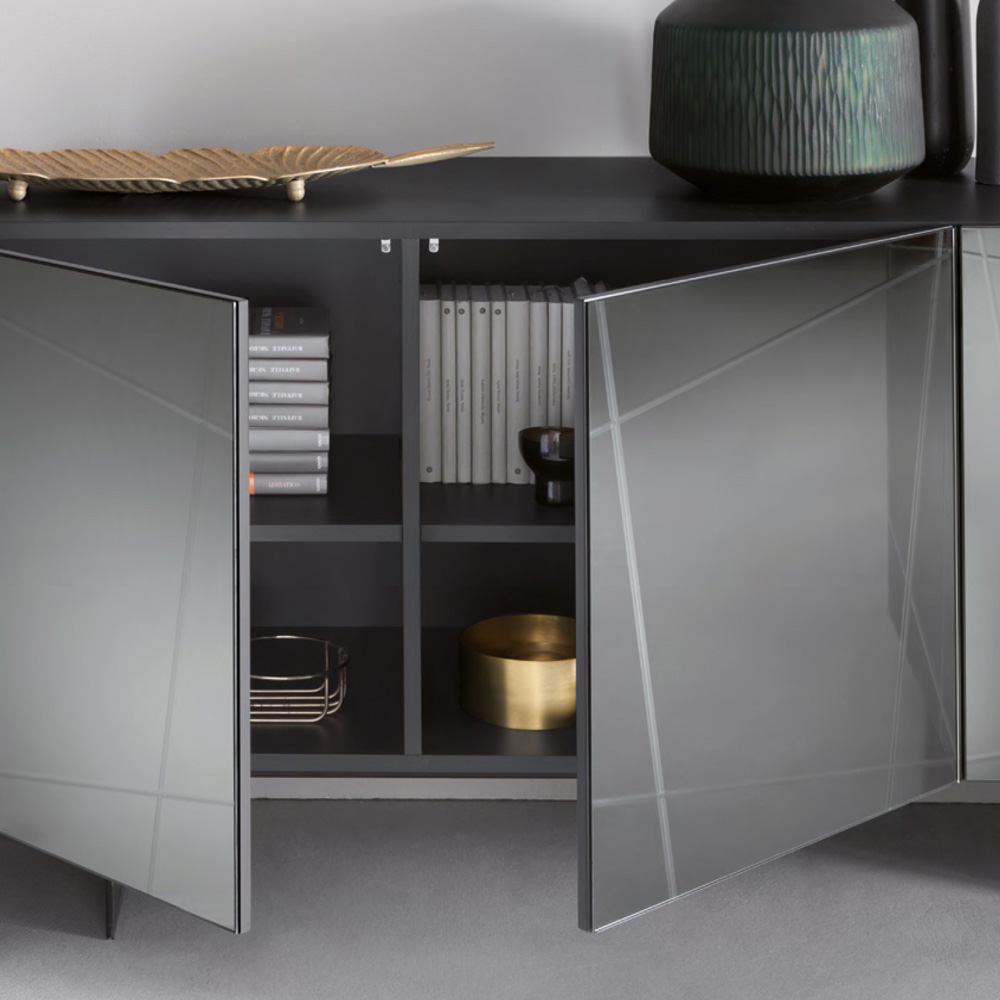 Modern skänk i melamin med dörrar täckta i Made in Italy spegel.