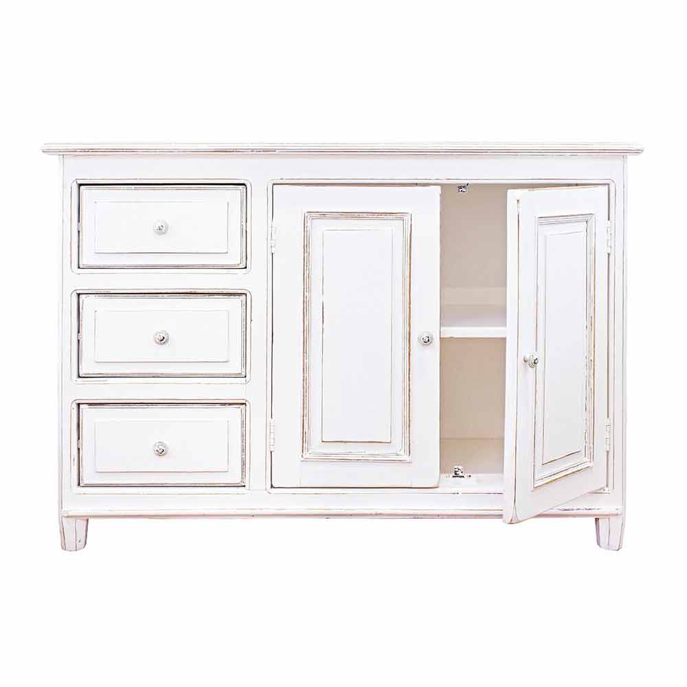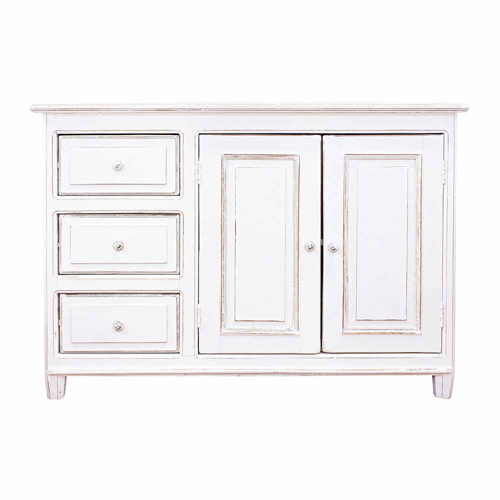 Rustik skänk med struktur i massivt mangoträ målat vitt.