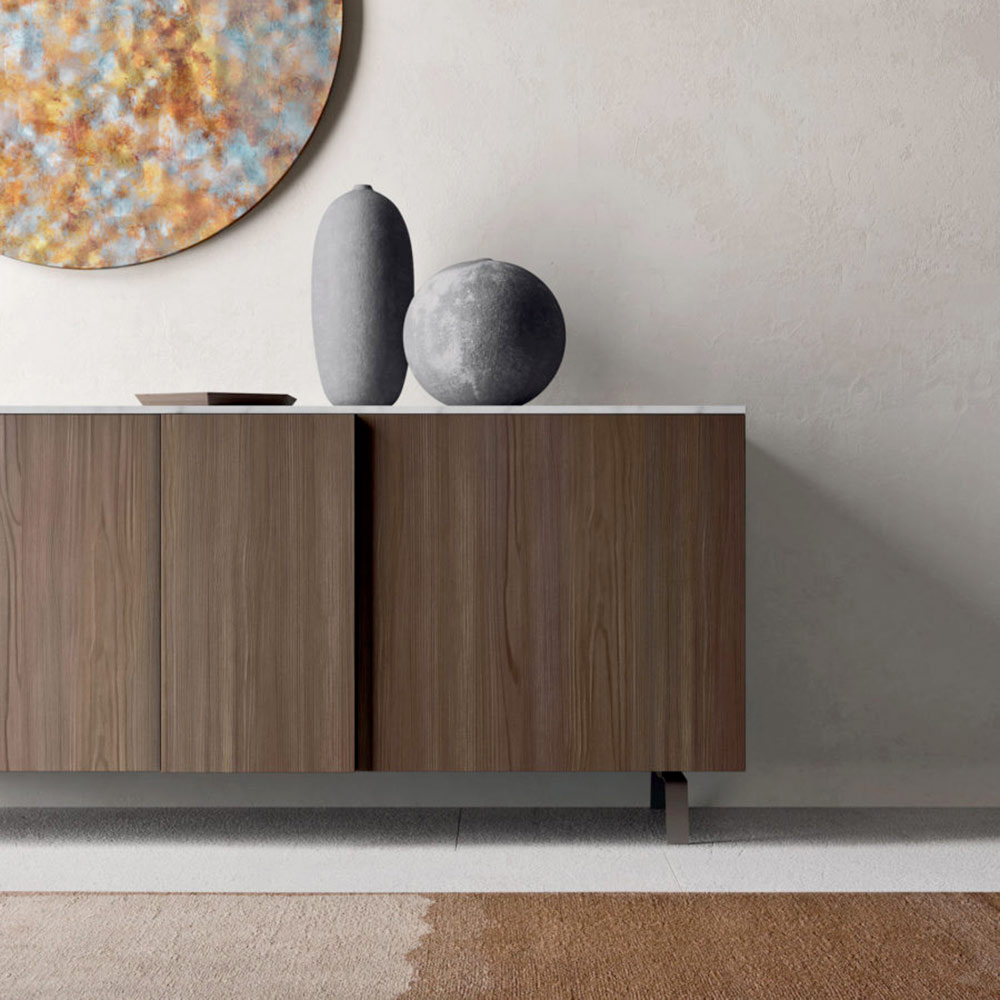 Skänk för vardagsrum med 2 dörrar i ekologiskt trä och högkvalitativ marmorplatta tillverkad i Italien.