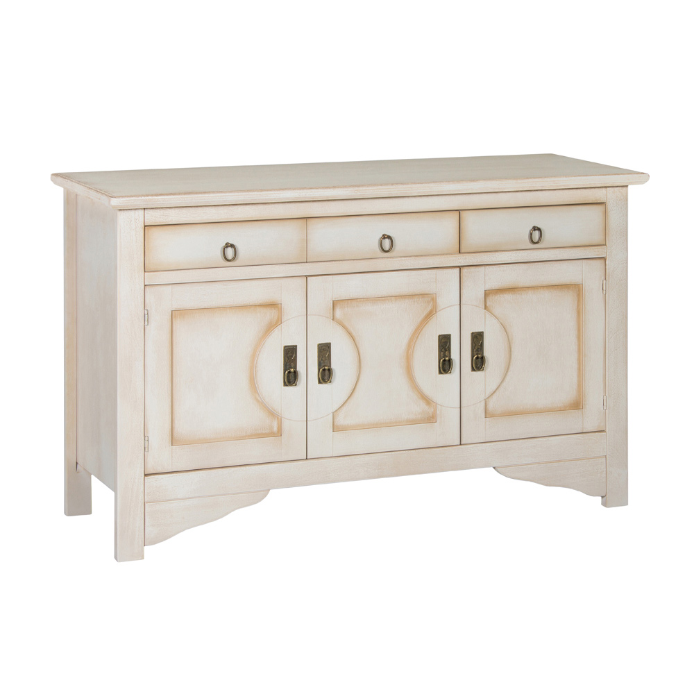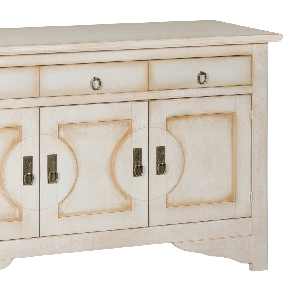 3 luckor och 3 lådor. Den första dörren öppnas till vänster, medan den centrala och tredje till höger, hänvisar till möbeln som vetter mot personen.