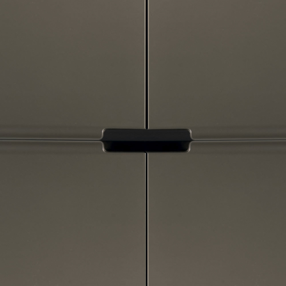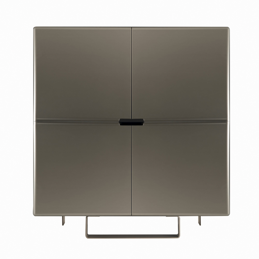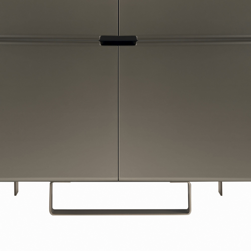 Vardagsrumsskänk med modern stil helt tillverkad i Italien bestående av järnfötter med nickelfinish och kolfinish mdf- skal med dörrar i nickelfinish . Användningen av enkla men motståndskraftiga material förändrar detta produceras i möbler med stor mångsidighet och ett attraktivt och intressant utseende.