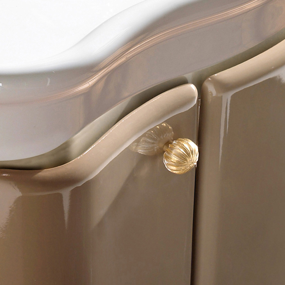 Badrumsskåp i MDF med två luckor och tvåfärgad karamellblank lackad låda med elfenbensstruktur , med vit keramisk handfat.Mässingsknoppar och handfat ingår.