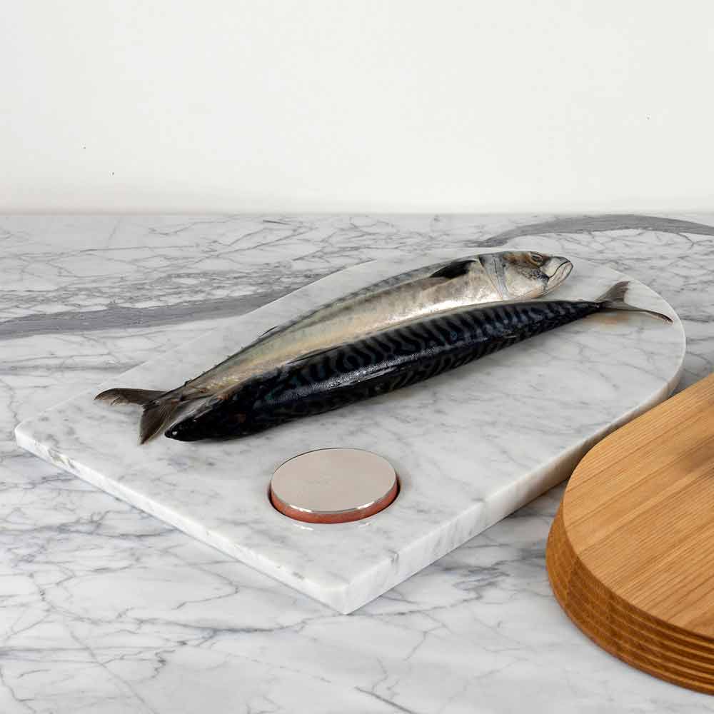 Träskärbräda, skärbräda i marmor och gjord i Italien tvål med luktborttagare för kökdesign.