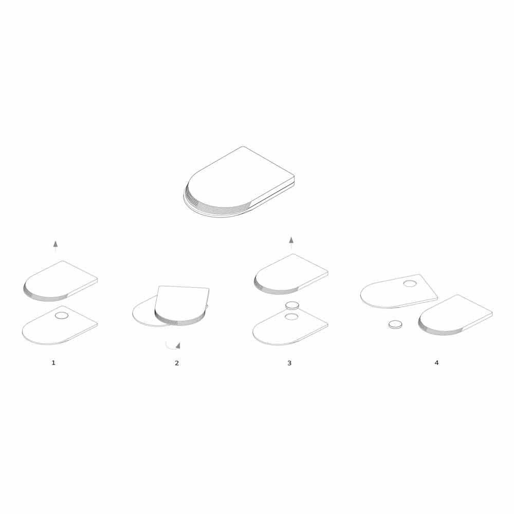 två överlappande skärbrädor finns ett tredje element som, förutom att fungera som en stift, kan extraheras och användas som en