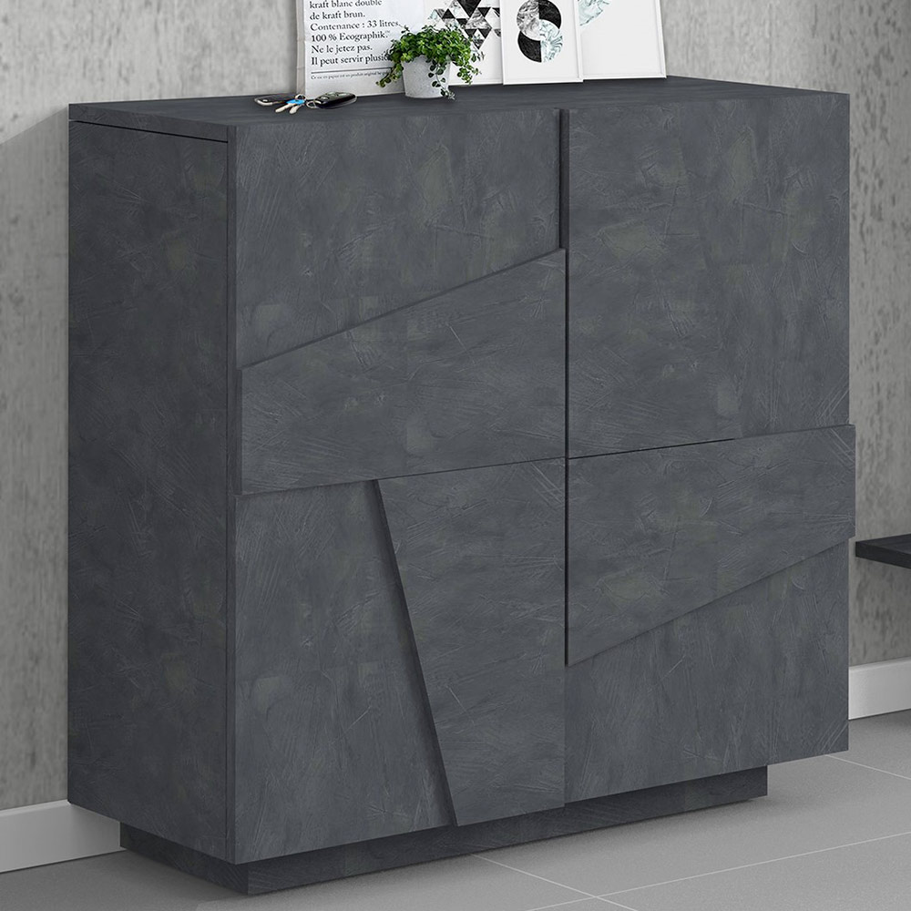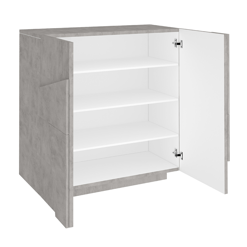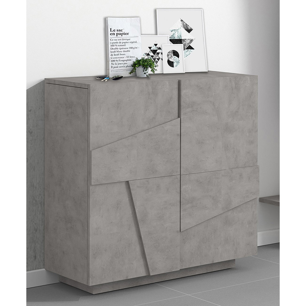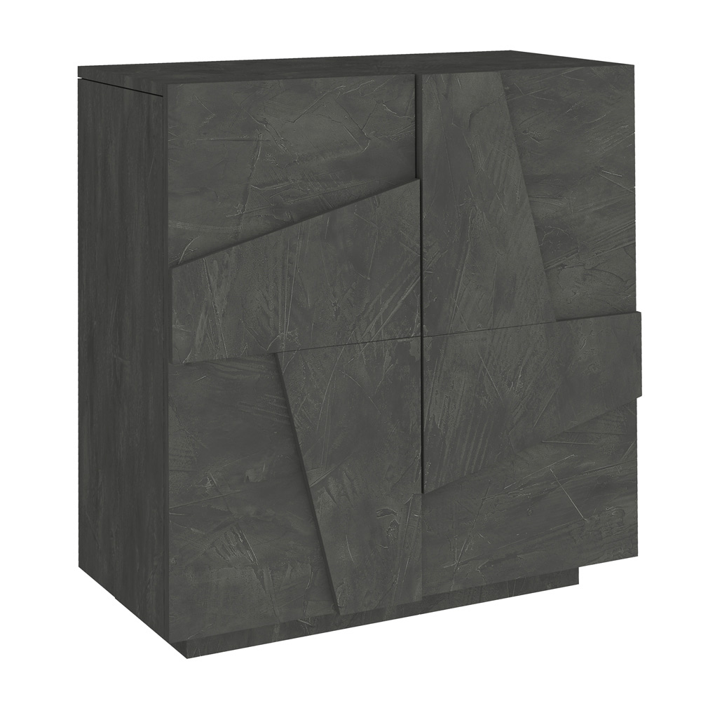 2 gångjärnsdörrar som är speciella genom den geometriska utskärningen i relief på ytan, som stänger