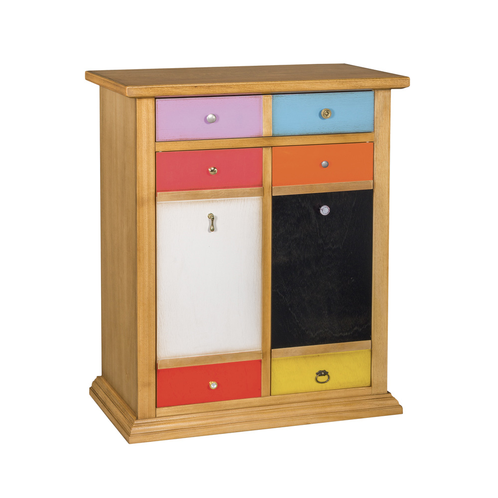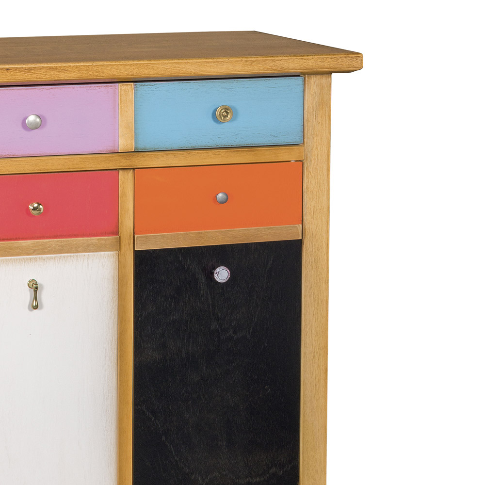Made in Italy. Glädje och lekfullhet är egenskaperna som beskriver detta element med starka ljusa färger och handtagens speciella former. En original omtolkning av en möbel med stor
