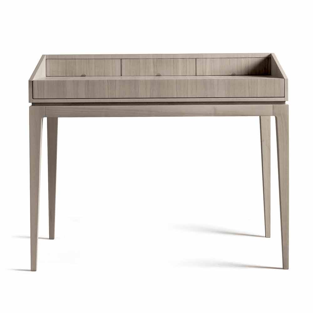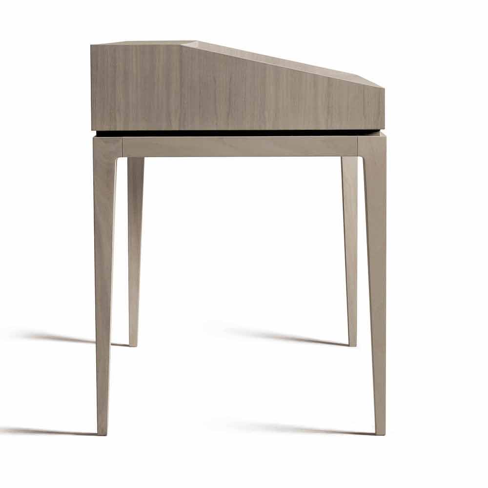 elegant skrivbord i huvudsak av naturliga valnöt eller naturliga valnöt nyanser av grått, som döljer stilistiska uttryck för företaget och den skicklighet med vilken den är gjord denna möbel och design i varje finish.