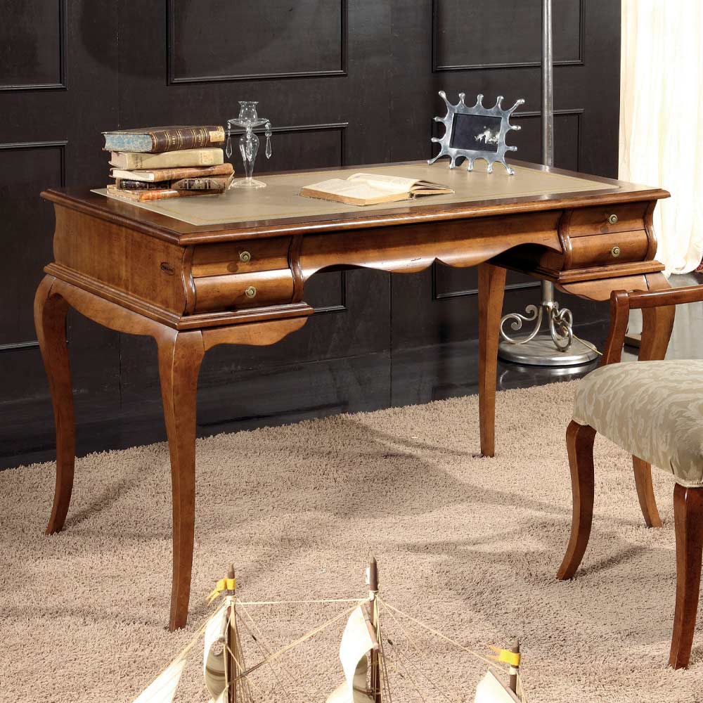 Skrivbord med 5 lådor i valnötsträ och ekoläder Tillverkat i Italien.
