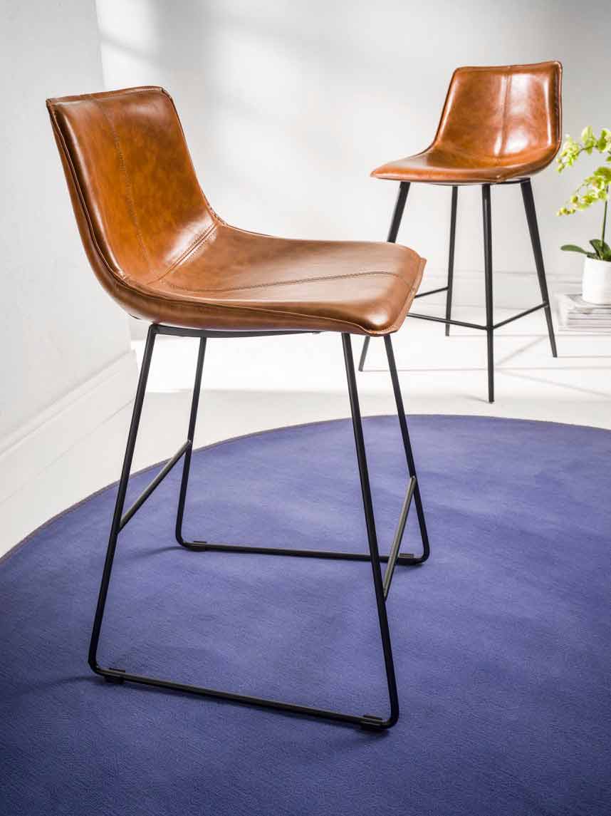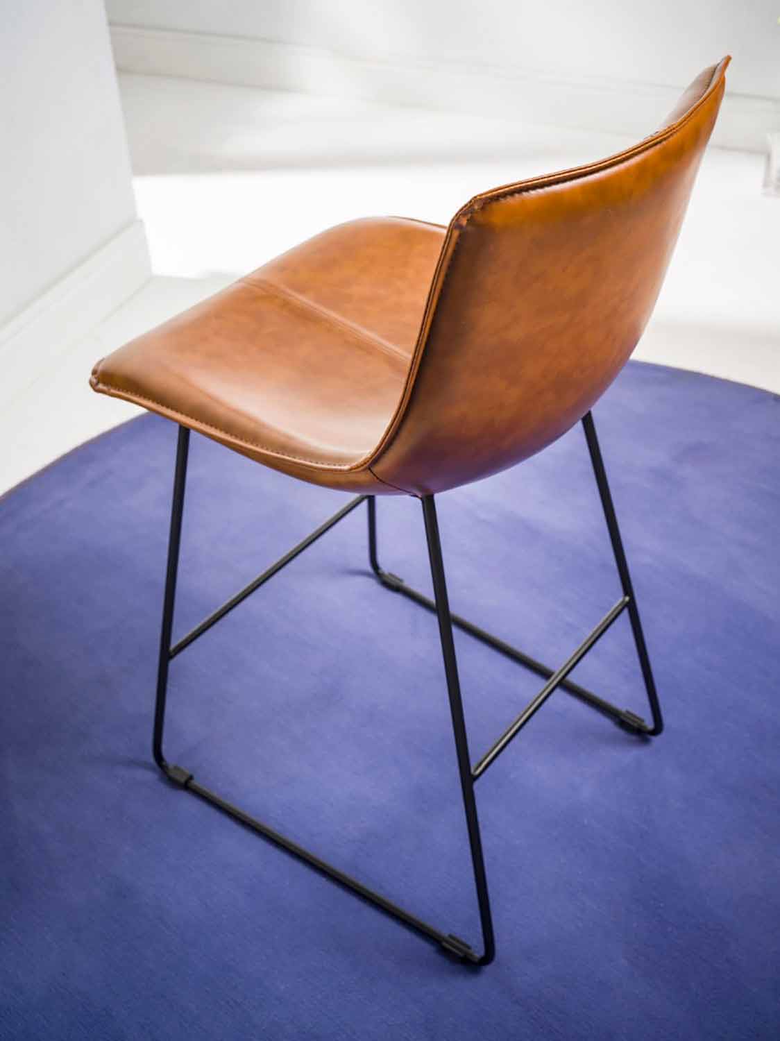 Utrustad med fotstöd och ryggstöd har denna pall en stark estetisk smak och komfort. Sitsen är i bebodd lädereffekt eko-läder.
