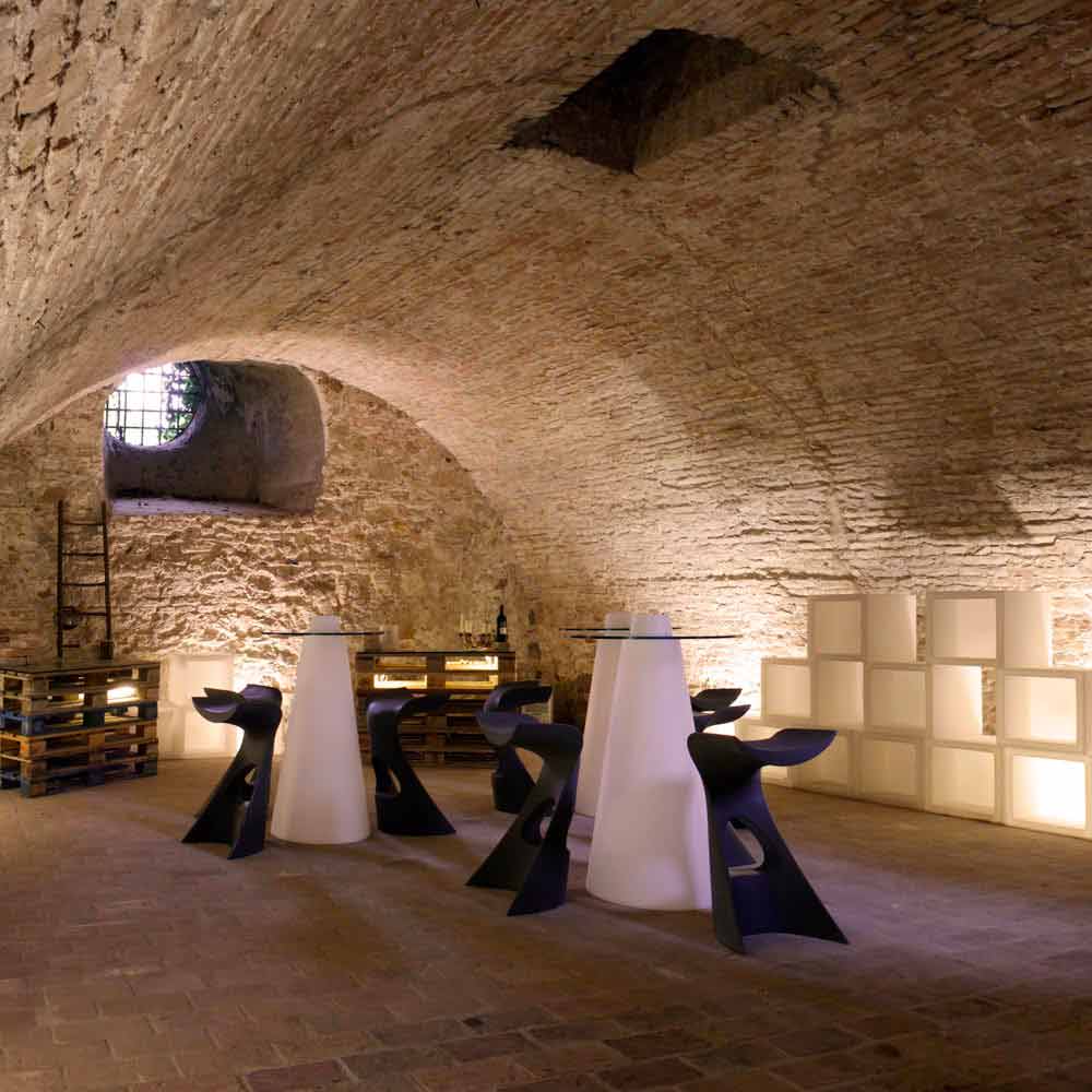 Slide Peak(H120) är ett soffbord tillverkat exklusivt för inomhusmiljöer. Perfekt för elegant inredning av evenemang eller raffinerade miljöer, denna möbel med en omisskännlig Made in Italy-design kommer att kunna göra atmosfären i ditt utrymme magisk tack vare det känsliga ljuset den avger.